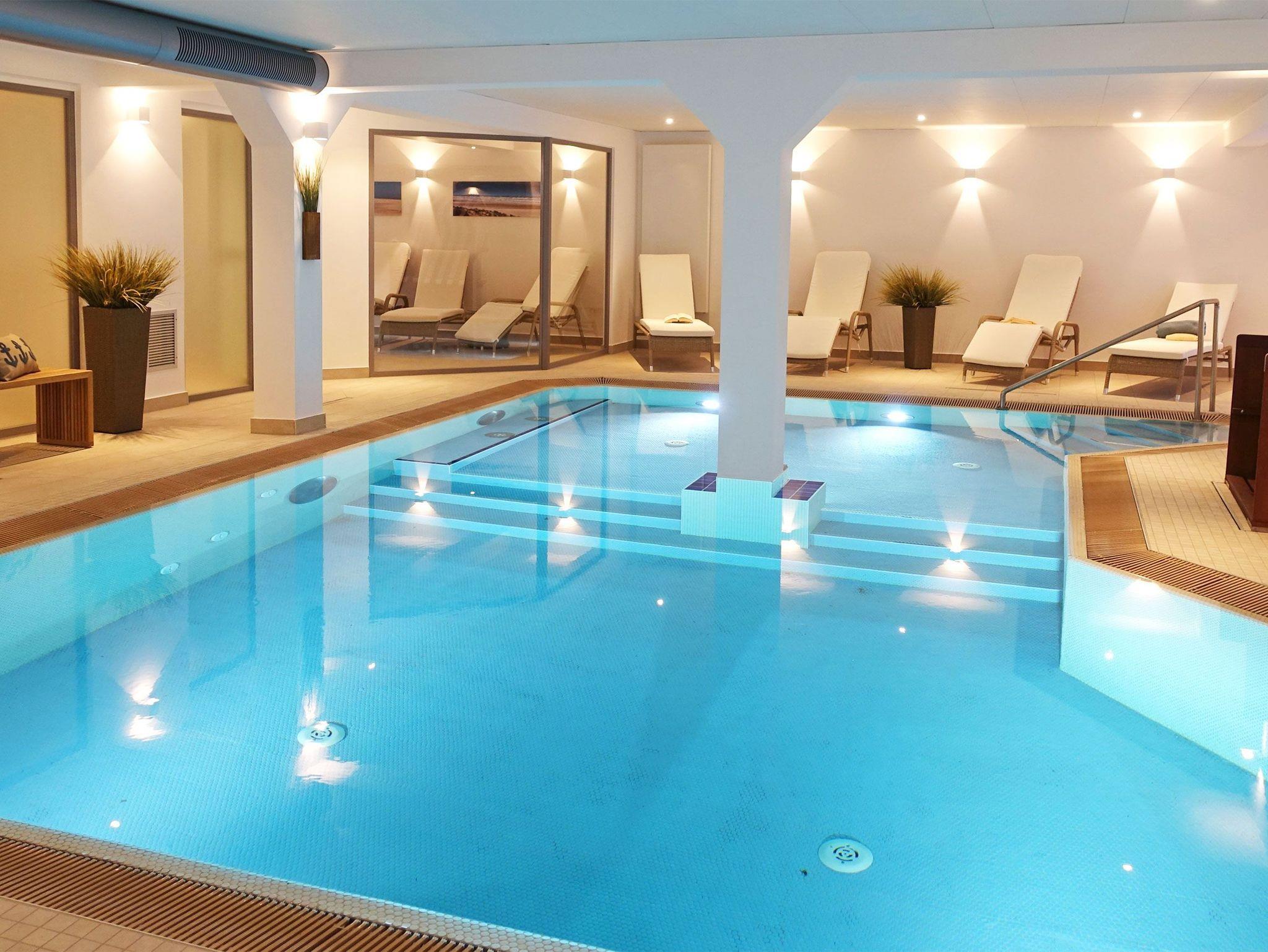 Genießen Sie das besondere Ambiente der Strandburg z.B. im Schwimmbad und in der Sauna. Es liegen Bademäntel für 2 Personen für Sie bereit.