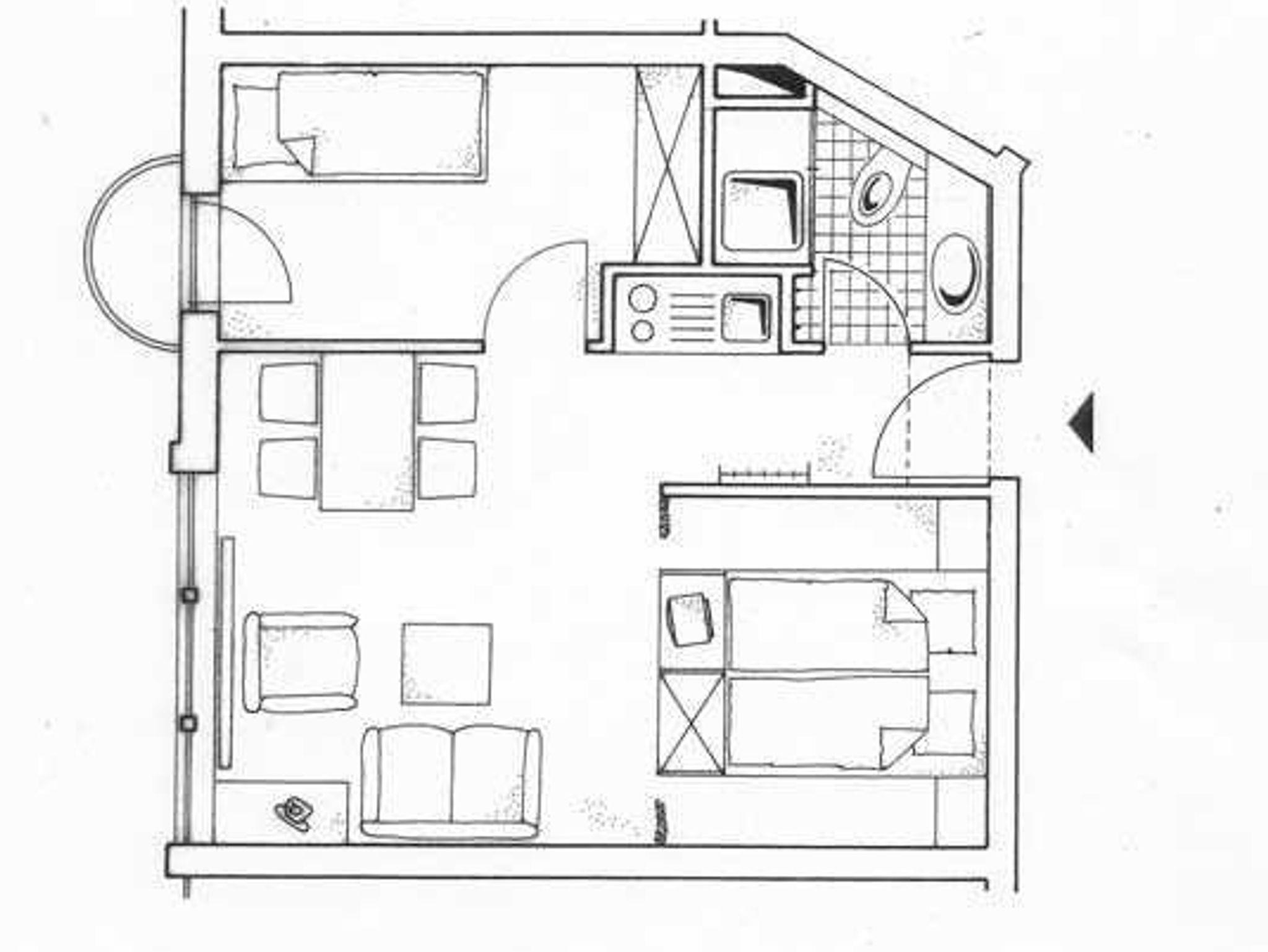 Es handelt sich um eine gemütliche Ferienwohnung, die aus 2 Zimmern besteht: einem kombinierten Wohn-/Schlafzimmer sowie einem Schlafzimmer mit Etagenbett.