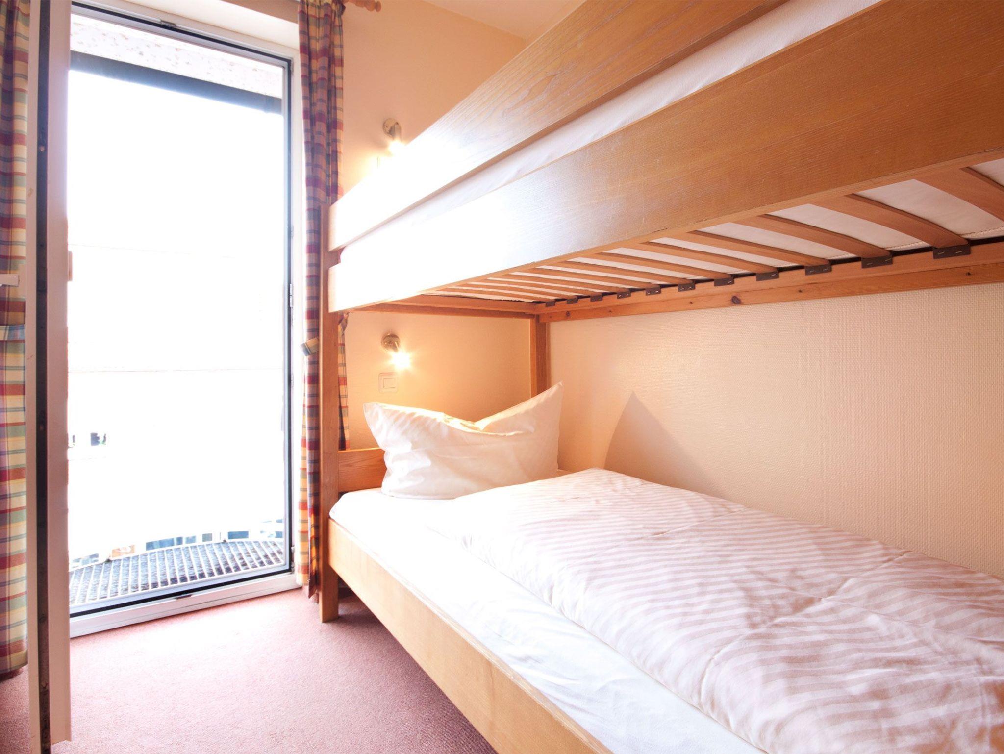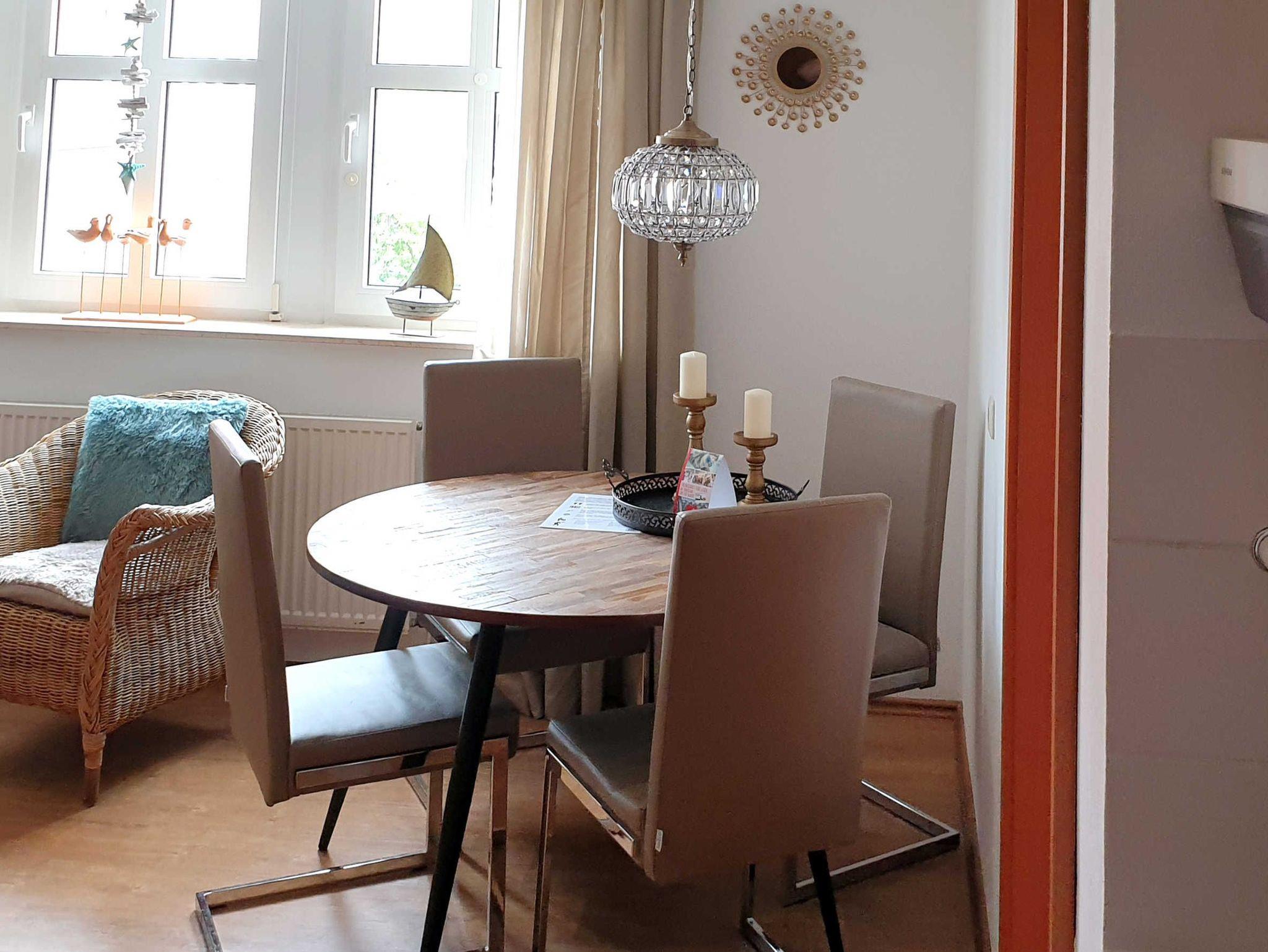 Gemütlich eingerichtete Ferienwohnung für bis zu 4 Personen in der 2. Etage der Inselresidenz Strandburg, Wohnraum mit abgetrennten Schlafbereich, Kinderzimmer.