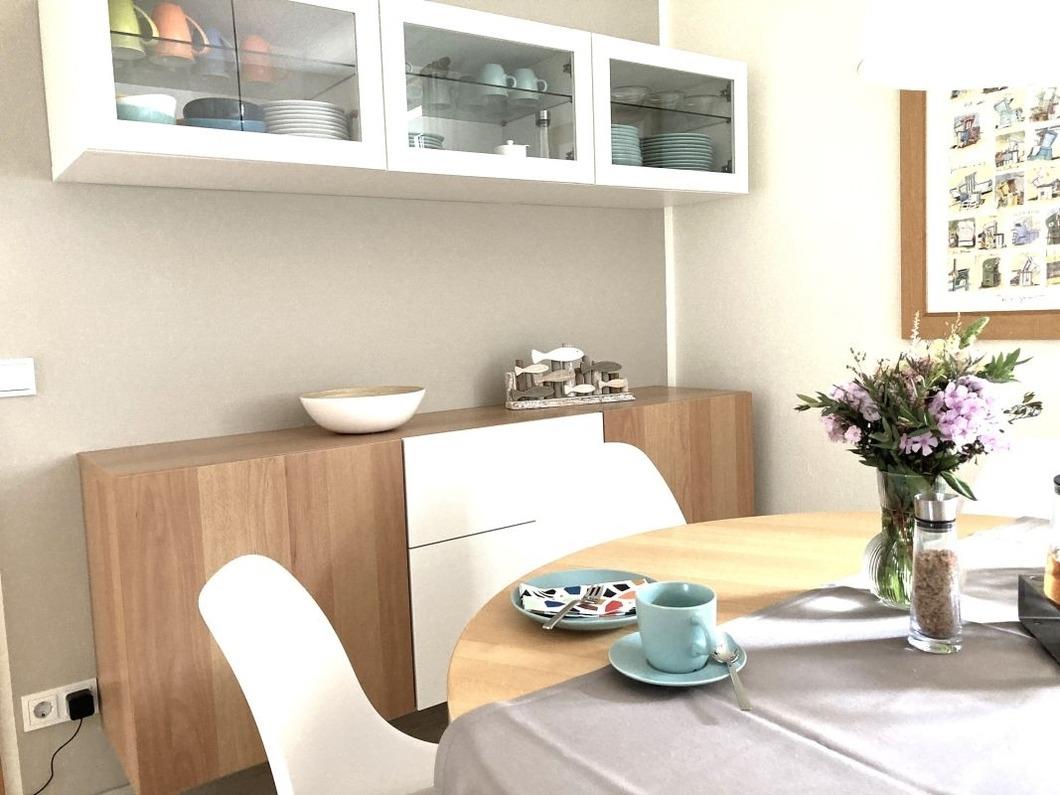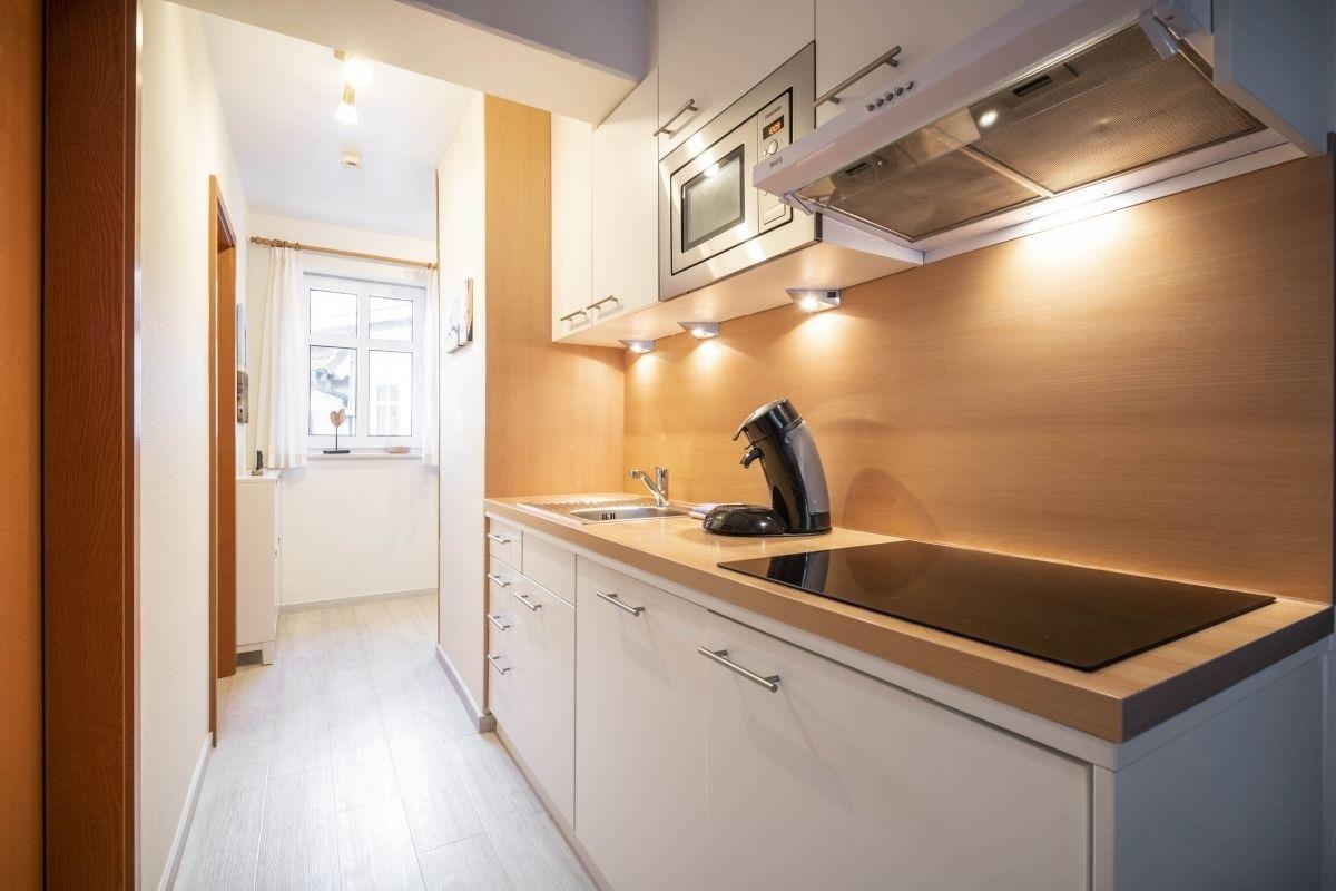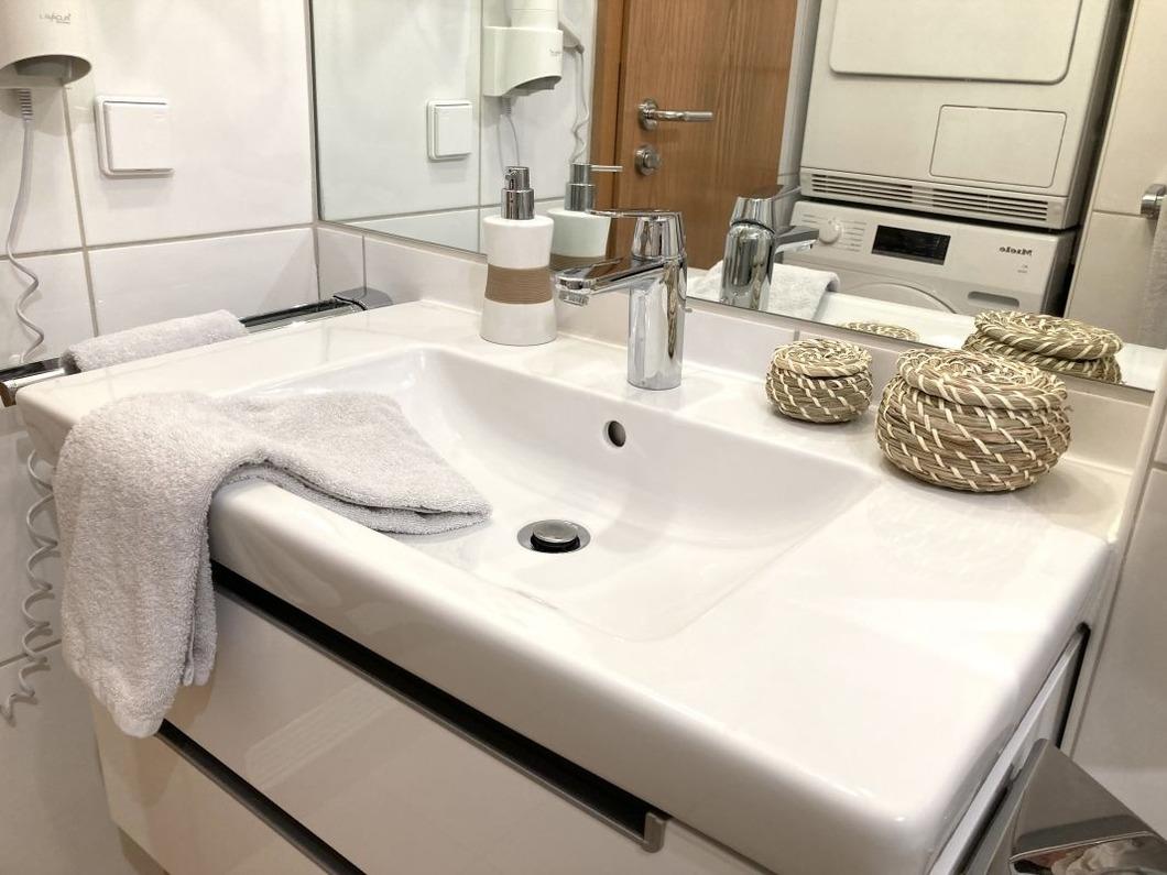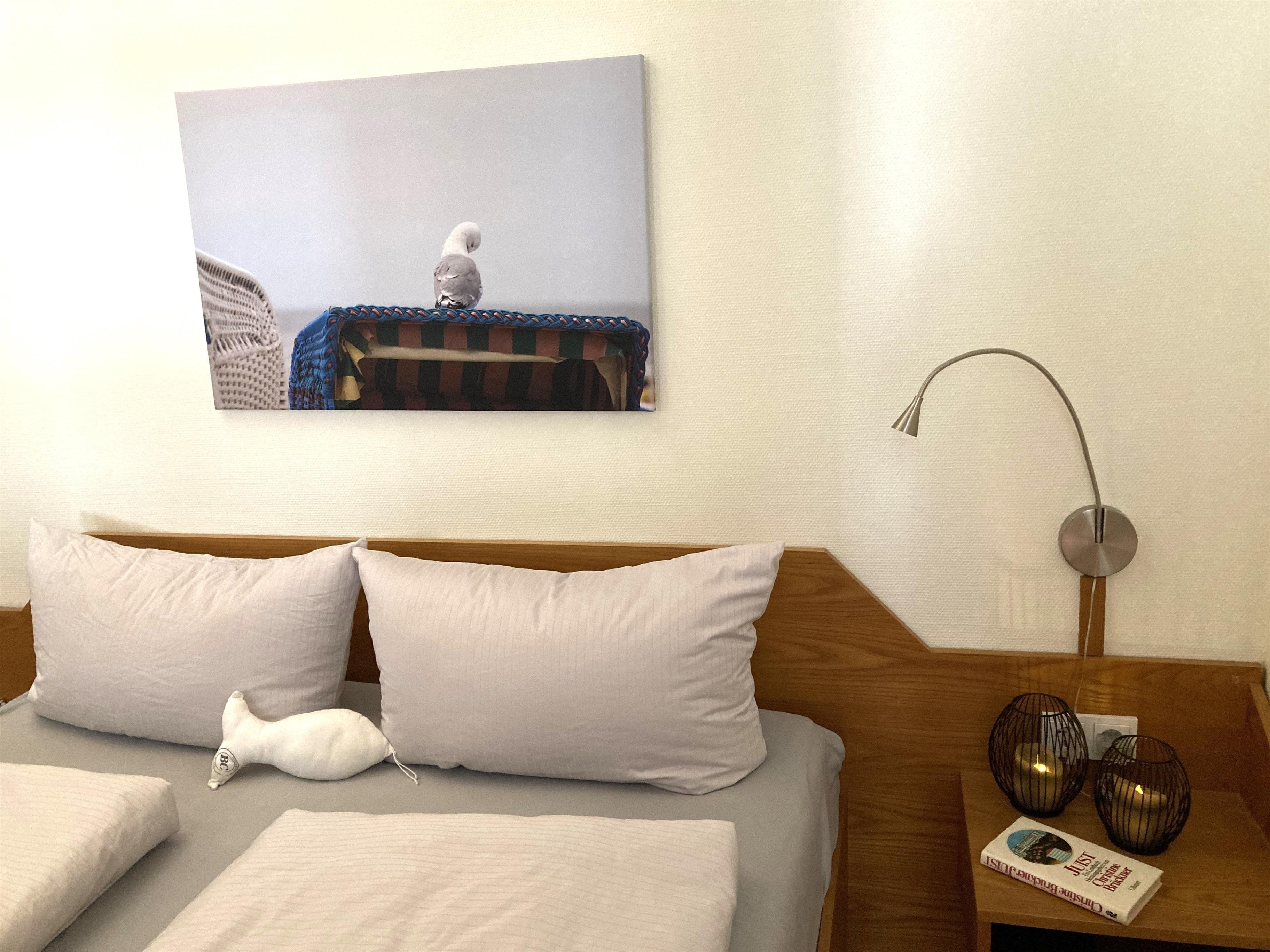 Die Wohnung ist vom DTV mit 4 Sternen ausgezeichnet und entsprechend komfortabel eingerichtet. Im Haus befindet sich ein frisch renoviertes Schwimmbad- und Saunabereich. Die Küche ist komplett und neu ausgestattet. Sie finden hier alles: Spülmaschine, Mikrowelle, Backofen, Wasserkocher, Eierkocher, Toaster, Waffeleisen, 3-Mix, Senseo- oder Filterkaffeemaschine zur Auswahl und mehr! Im Essbereich befindet sich ein runder Esstisch an dem 6 Personen bequem Platz finden. Im Wohn-Schlafzimmer ist ein Doppelbett (160x200) optisch durch einen Schrank vom einladenden Sofa mit Récamiere getrennt. Das Smart-TV ist zum Bett hin drehbar. In einem Schlafzimmer befindet sich ein Doppelbett (160x200) und in dem 2. Schlafzimmer ein Etagenbett, das eher für Kinder ausgelegt ist (180x90). Das Duschbad enthält ausreichend Handtuchstangen, Haken, Ablagen, Föhn und 2 großen Schubladen, sowie eine Dusche mit Glas-Duschabtrennung. Ihnen steht in der Wohnung eine Waschmaschine, ein Wäschetrockner und ein Bügeleisen zur Verfügung. Sie finden die Ferienwohnung für Sie komplett hergerichtet vor. Bettwäsche, Handtücher, Bademäntel und Küchentücher sind im Preis enthalten und werden regelmäßig ausgetauscht. Unsere Hausdame steht Ihnen für Fragen und Wünsche zur Verfügung.