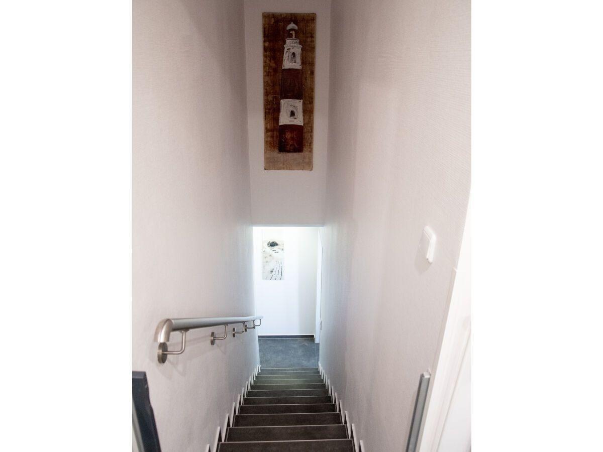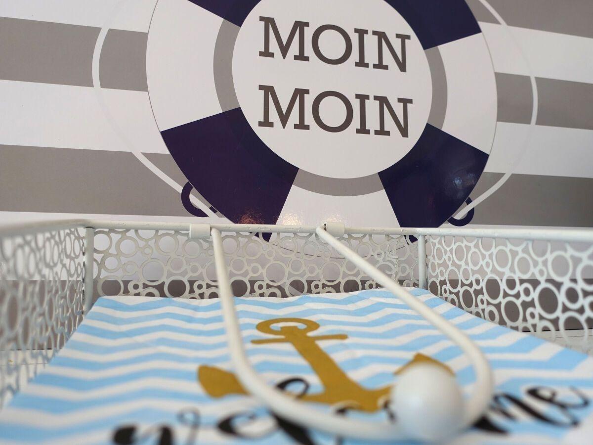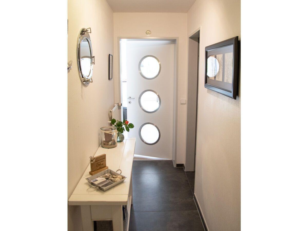 Die liebevoll maritim, modern eingerichtete Wohnung Bullauge erstreckt sich über zwei Etagen und ist etwa 65m² groß.