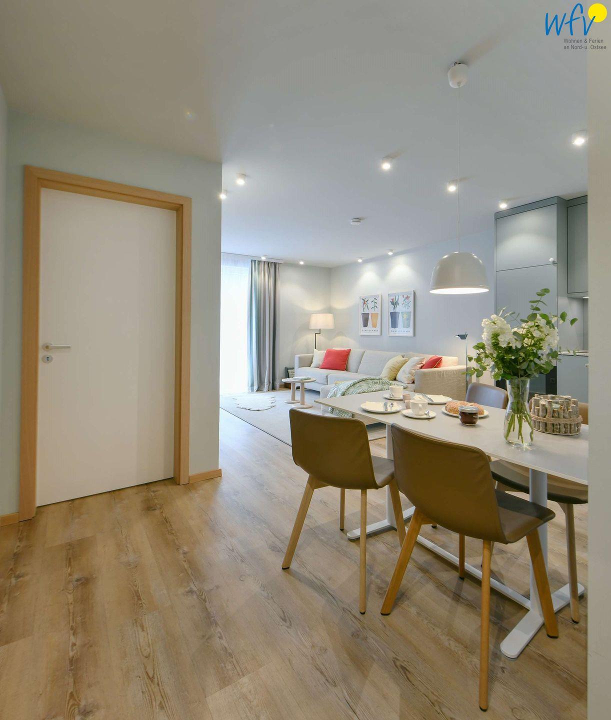 Die Ferienwohnung verfügt über ein separates Schlafzimmer, einen großzügigen Wohnraum mit integrierter Küche, ein Duschbad und eine große Terrasse und ist damit ideal für den Urlaub mit bis zu vier Personen. Helle Räume, eine sehr geschmackvolle Einrichtung in dezenten Farben und nordischem Stil sowie eine gute technische Ausstattung bieten Ihnen Wohnkomfort. Sie möchten gerne mit mehreren Personen verreisen? Diese Wohnung kann mit der weiteren Wohnung im UG (3460002 "Seestern" mit Sauna) mit einem eigenen Flurbereich zusammengelegt werden. Sprechen Sie uns gerne an!