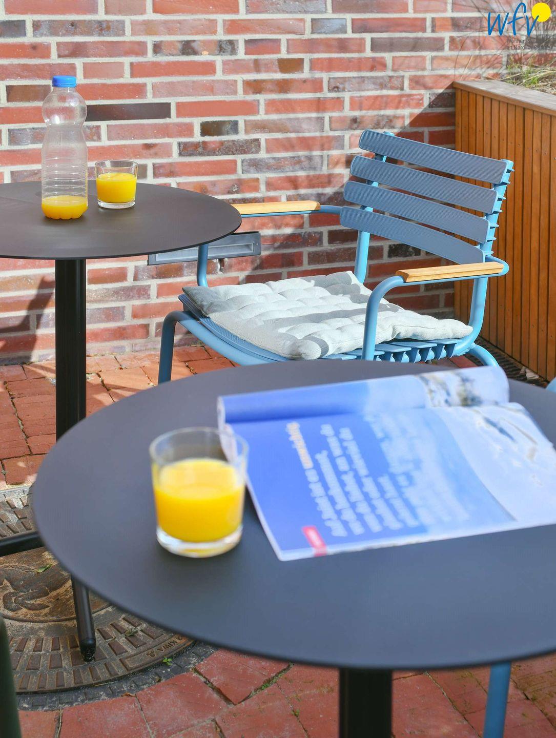 Die 11 m² große Terrasse mit Liegestühlen und Sonnenschirm lädt rundum zur Erholung ein. Hier können Sie mit Blick ins Grüne die Seele baumeln lassen, die Sonne genießen oder bei einem guten Glas Wein die Abendröte beobachten. Das sind unvergessliche Urlaubserlebnisse auf dem schönen Töwerland!