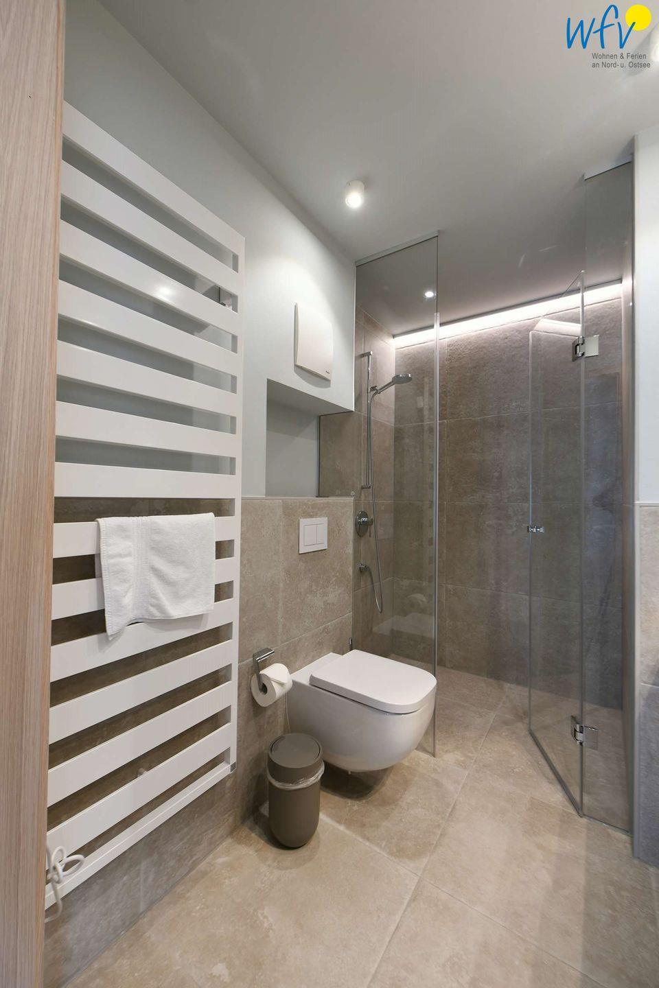 Weiteren Wohnkomfort bietet Ihnen das moderne Badezimmer mit stilvoller Ausstattung.