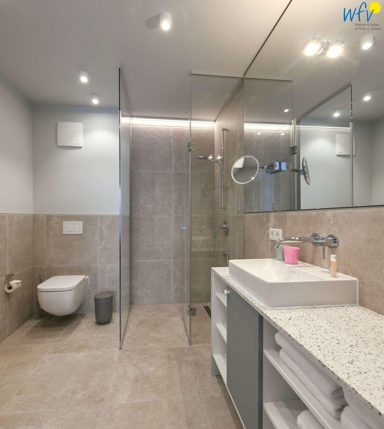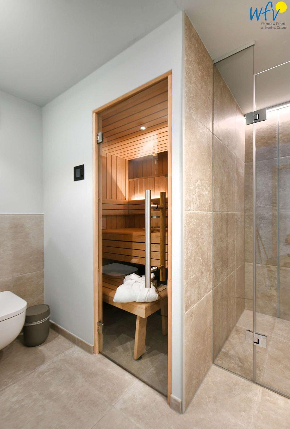 Weiteren Wohnkomfort bieten Ihnen die zwei modernen Badezimmer mit stilvoller Ausstattung. Eines verfügt über eine eigene Sauna - ideal für Entspannungsmomente nach dem Strandspaziergang!