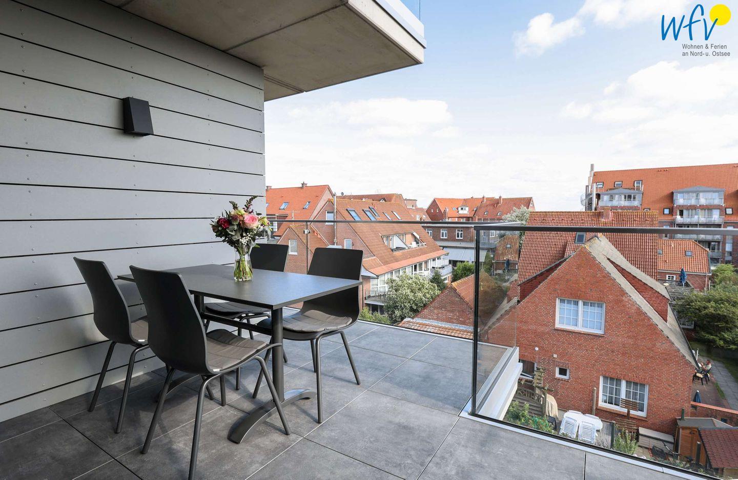 Genießen Sie auf Juist wärmende Sonnenstrahlen und frische Nordseeluft: Auf dem hübsch möblierten und windgeschützten Balkon unserer Ferienwohnung "ROMEO" sind Ihnen herrliche Stunden zum Relaxen garantiert! Perfekt, um in Ruhe ein spannendes Buch zu lesen, die Seele baumeln zu lassen oder abends bei einem guten Glas Wein den Sonnenuntergang zu genießen.