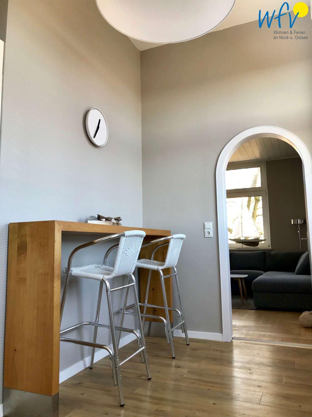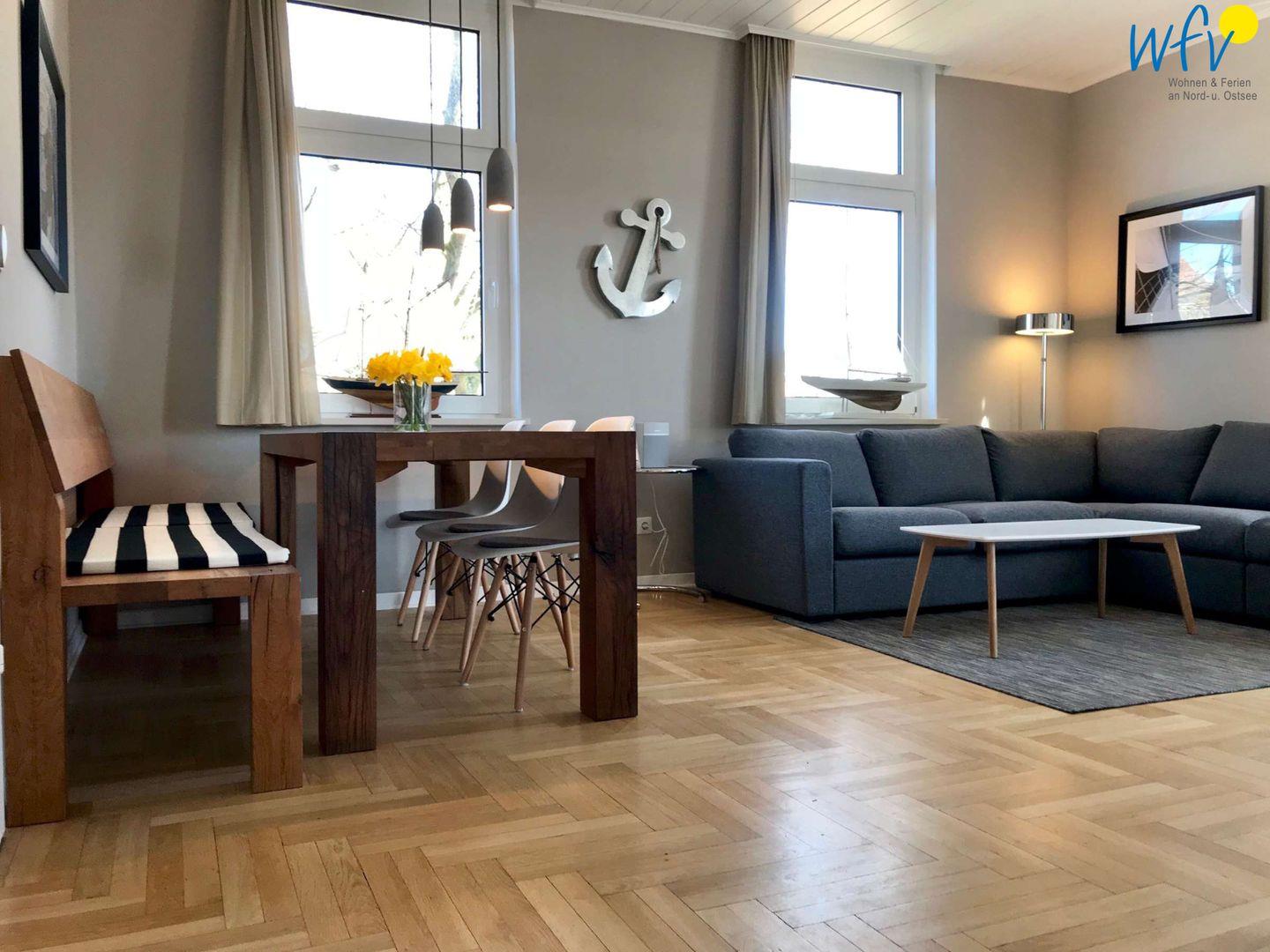 Helle Räume, stilvolles Mobiliar und ausgewählte Accessoires sorgen für eine freundliche Atmosphäre! Durch die zentrale Lage im Dorf am Kurpark, haben Sie von der Wohnung aus einen wunderschönen weitläufigen Blick auf den Kurpark, das Wattenmeer und den Hafen.