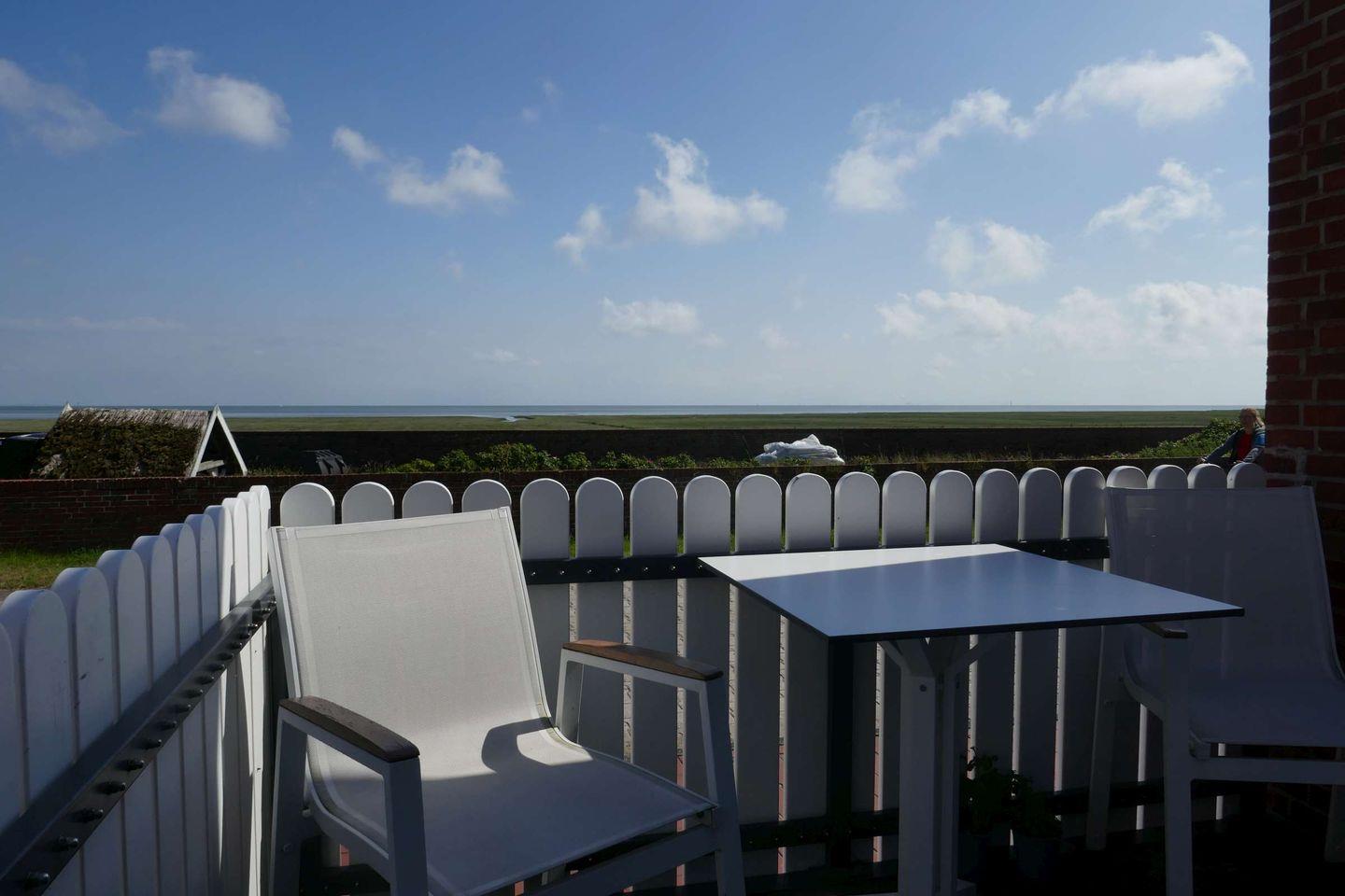 Herrlich entspannen können Sie natürlich auch bei Sonne und Nordseeluft! Die Ferienwohnung "Wattblick 1" besitzt eine möblierte Terrasse mit Zugang zu einem gemeinsamen Garten und Grillplatz. Ideal für wunderbare Urlaubsabende nach dem Strandtag!