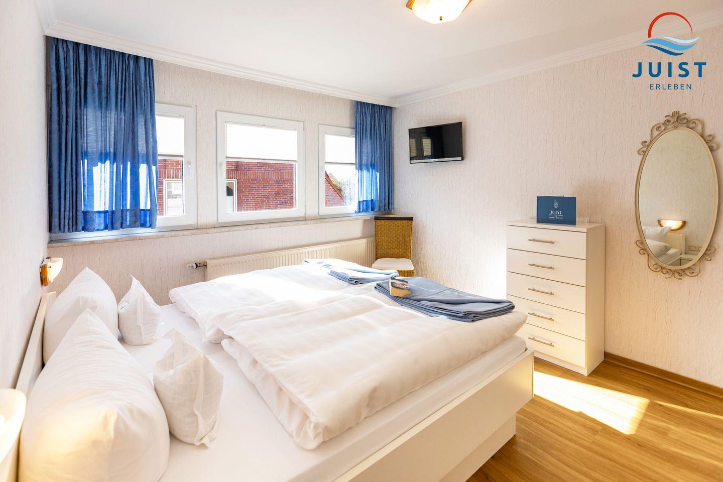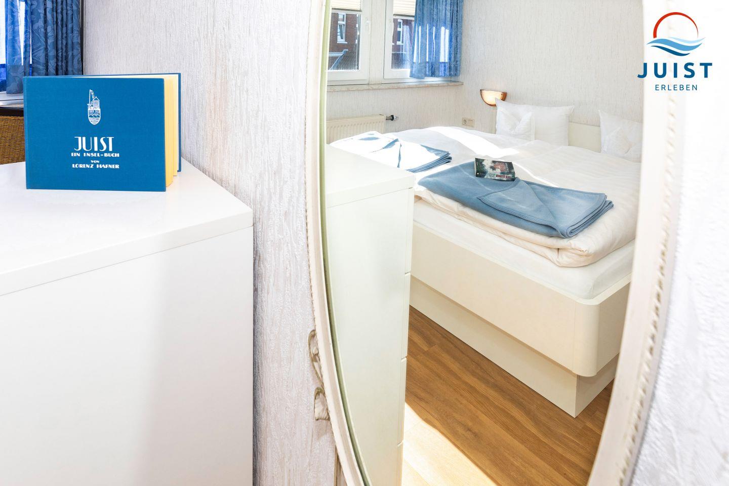 Das separate Schafzimmer der Ferienwohnung ist mit einem Doppelbett ausgestattet.