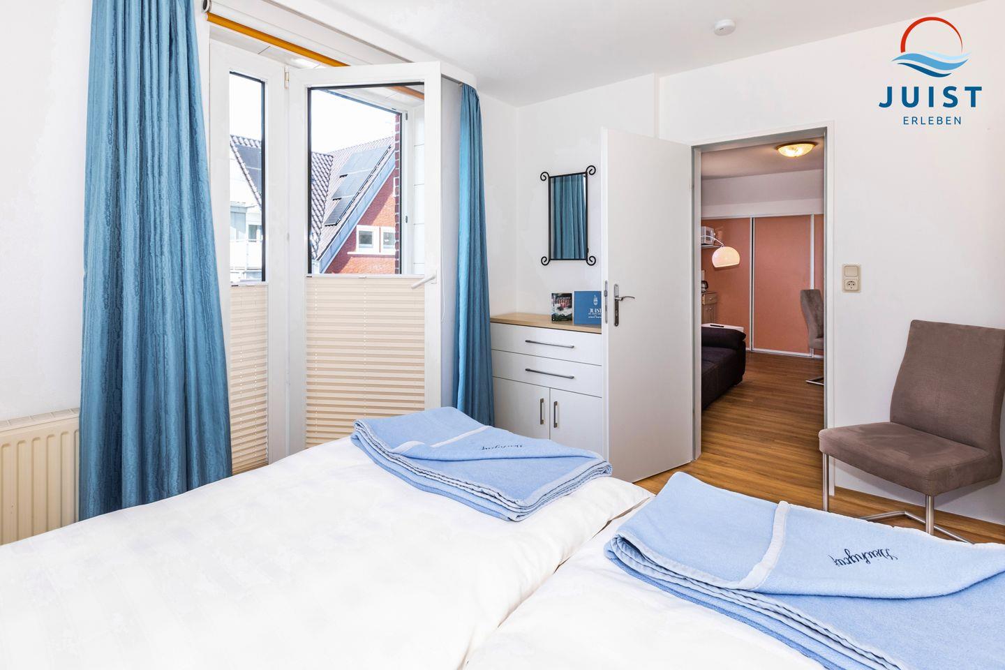 Das separate Schafzimmer der Ferienwohnung ist mit einem gemütlichem Doppelbett ausgestattet.