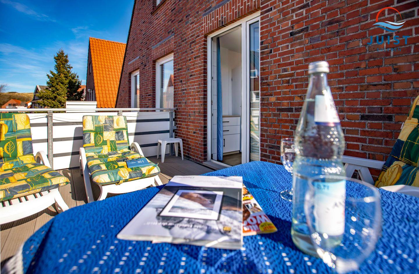 Zum ausgiebigen Relaxen ist vor allem der schöne Balkon ideal! Hier bei Sonne und frischer Nordseeluft bei einer Tasse Tee genossen werden.