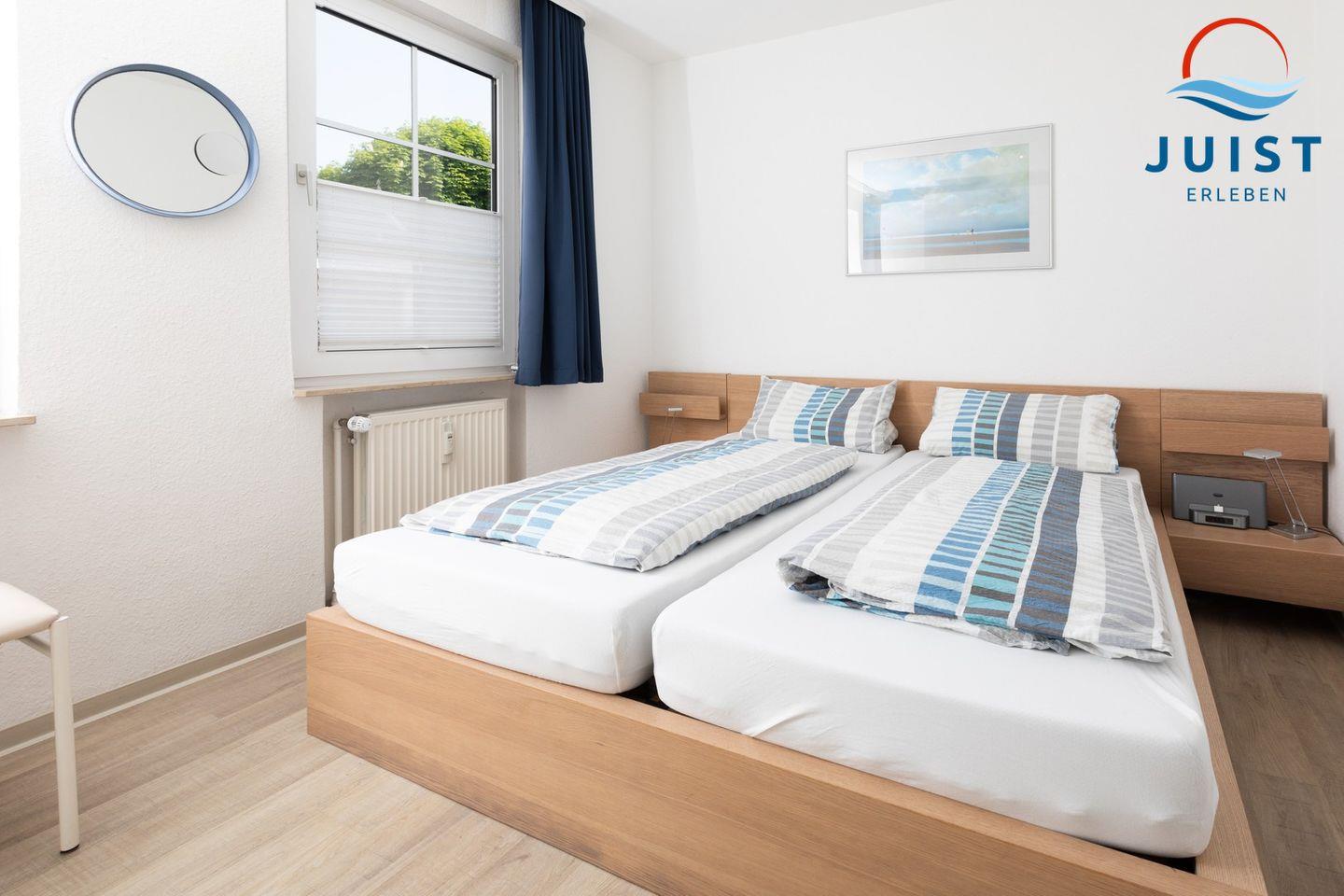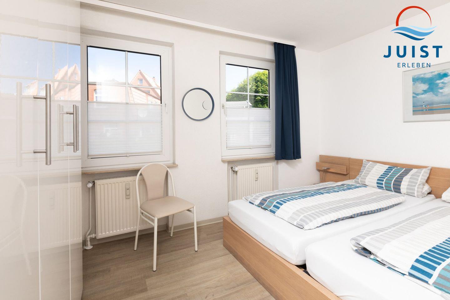 Das Zweibettzimmer ist mit einem Etagenbett (90 x 200 m) eingerichtet.
