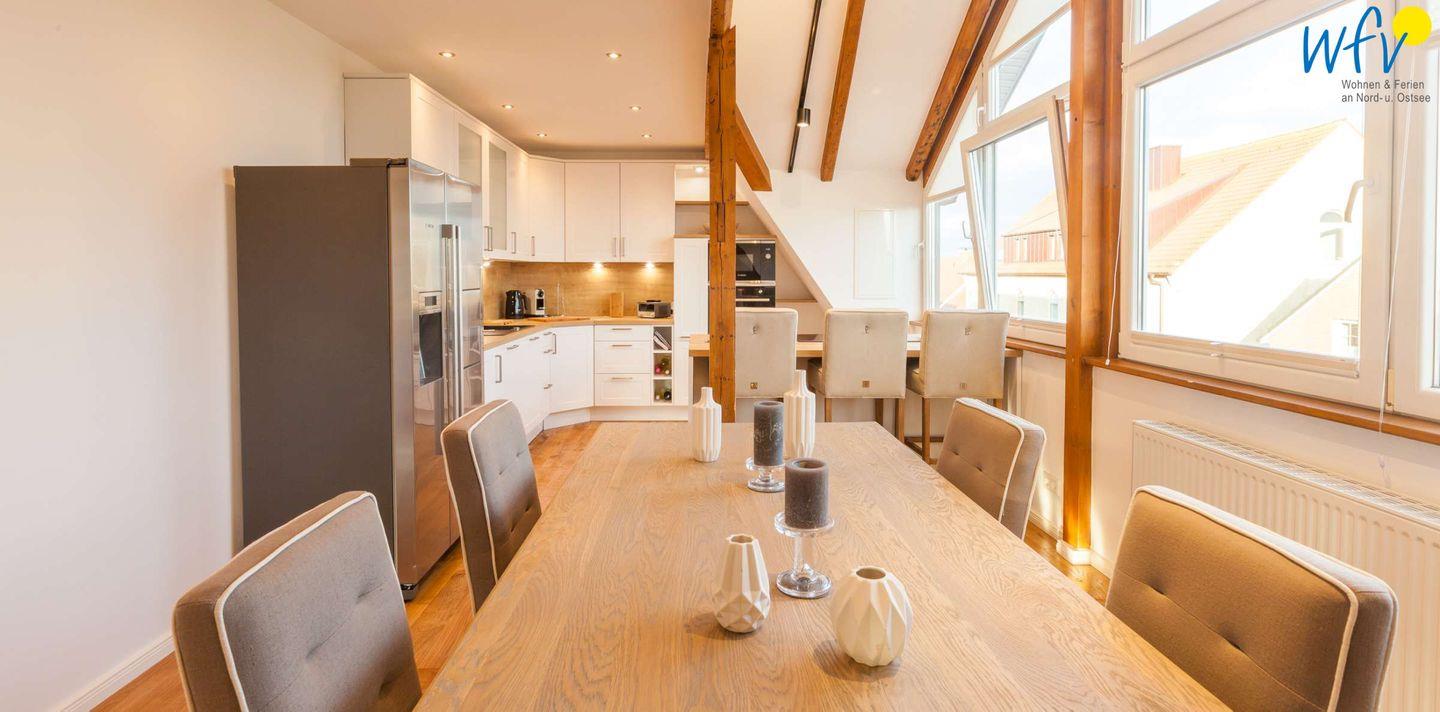 Dieses außergewöhnliche Appartement mit Meerblick bietet Ihnen viel Platz und gleichzeitig Gemütlichkeit. Breite Fensterfronten mit herrlichem Lichteinfall sowie eine Aufteilung über zwei Etagen sorgen für ein weites Raumgefühl. Durch eine hochwertige Einrichtung und stilvolle Accessoires entfaltet sich ein modernes Ambiente mit sehr geschmackvoller Farbgestaltung. Klare Formen korrespondieren mit edlen Materialien; freigelegte Holzbalken und warme Parkettböden verleihen der Ferienwohnung die entsprechende Behaglichkeit. Unsere "Kleine Töwerliebe" ist eine Wohlfühloase für traumhaft erholsame Tage auf Juist!