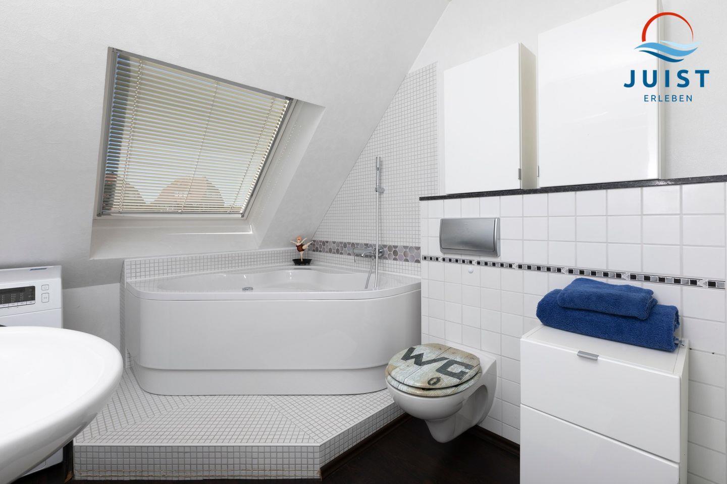 Das helle und geräumige Duschbad mit Fenster bietet viel Tageslicht und eine angenehme Atmosphäre.