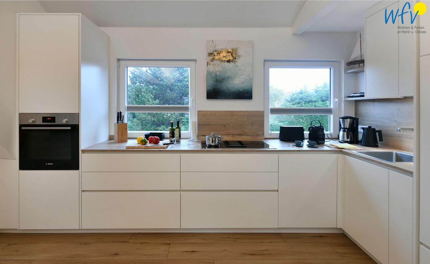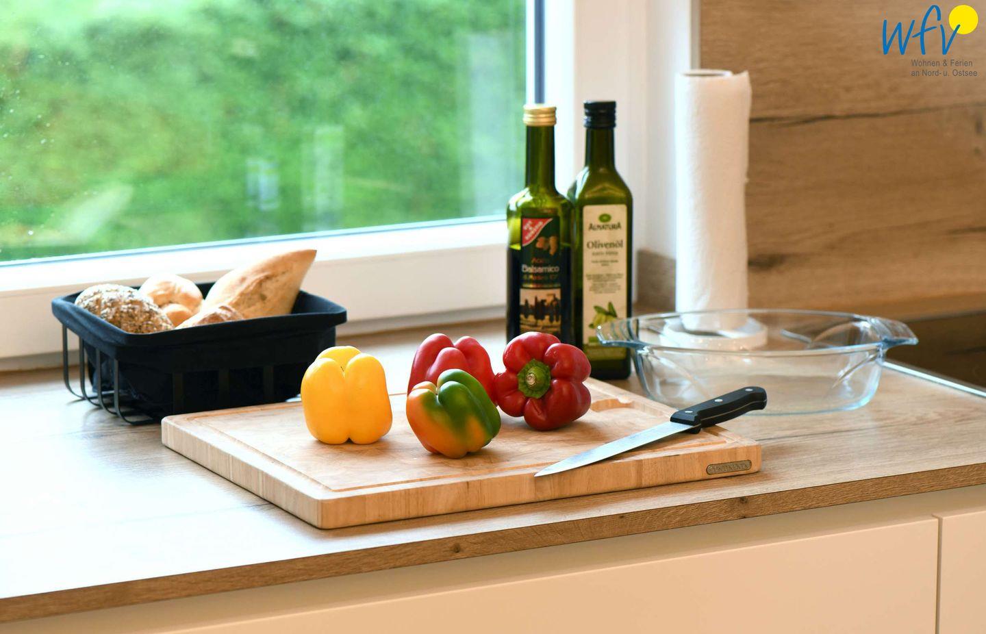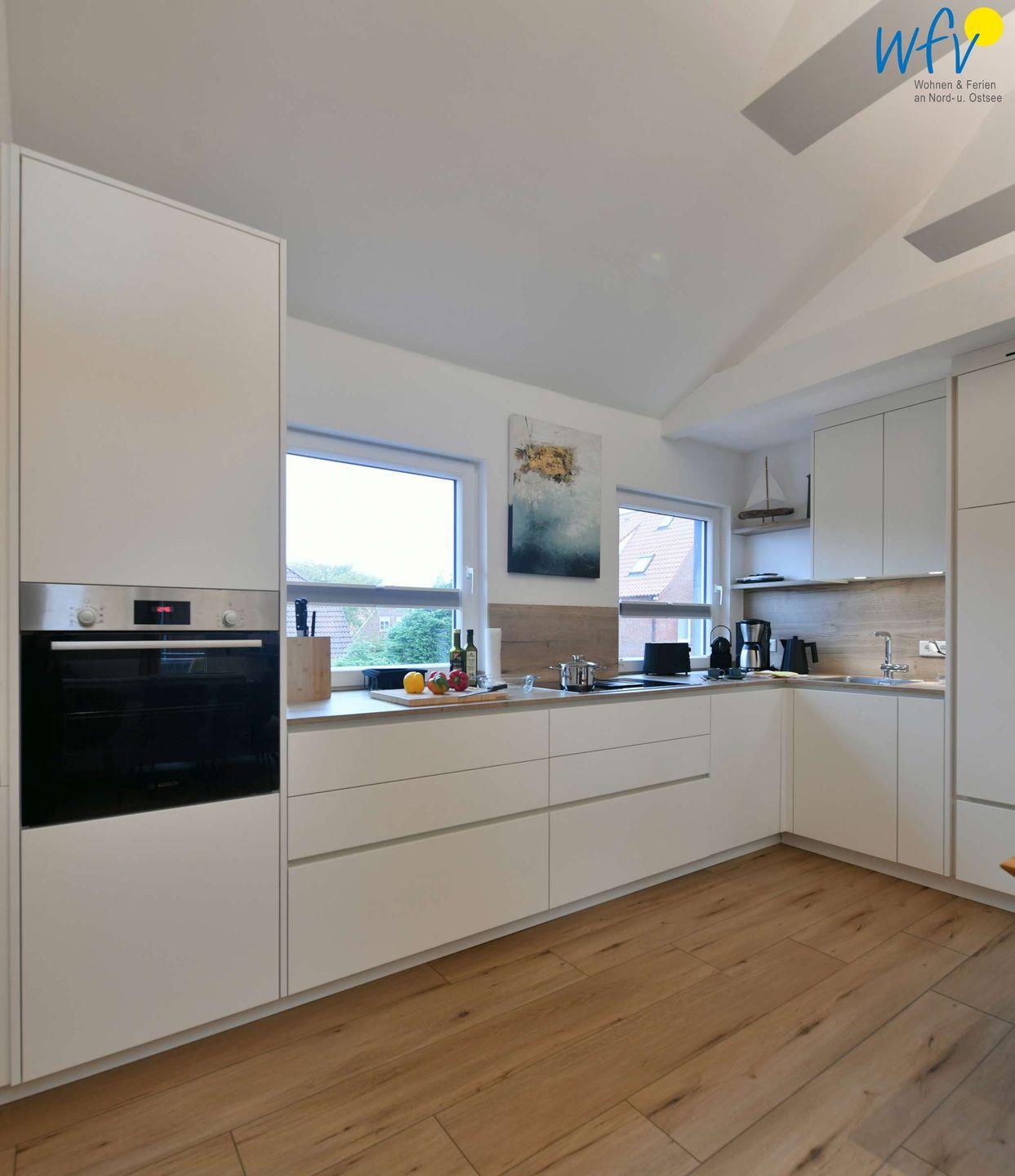 Passgenau angefertigte Möbel und harmonische Farbabstimmungen sorgen für die entsprechende Gemütlichkeit. Die moderne Küche lässt Sie auch im Urlaub zu echten Gourmets werden. Gesellige Abende mit 4-Gang-Menü sind also vorprogrammiert! Im Wohn-/Esszimmer sorgt die Sitzbank mit Esstisch und Stühlen für eine gesellige Atmosphäre. Auch auf der Couch können Sie sich entspannen und ein Buch lesen oder Fernsehen. Vom Wohnzimmer aus gelangen Sie auf den sonnigen Südbalkon.