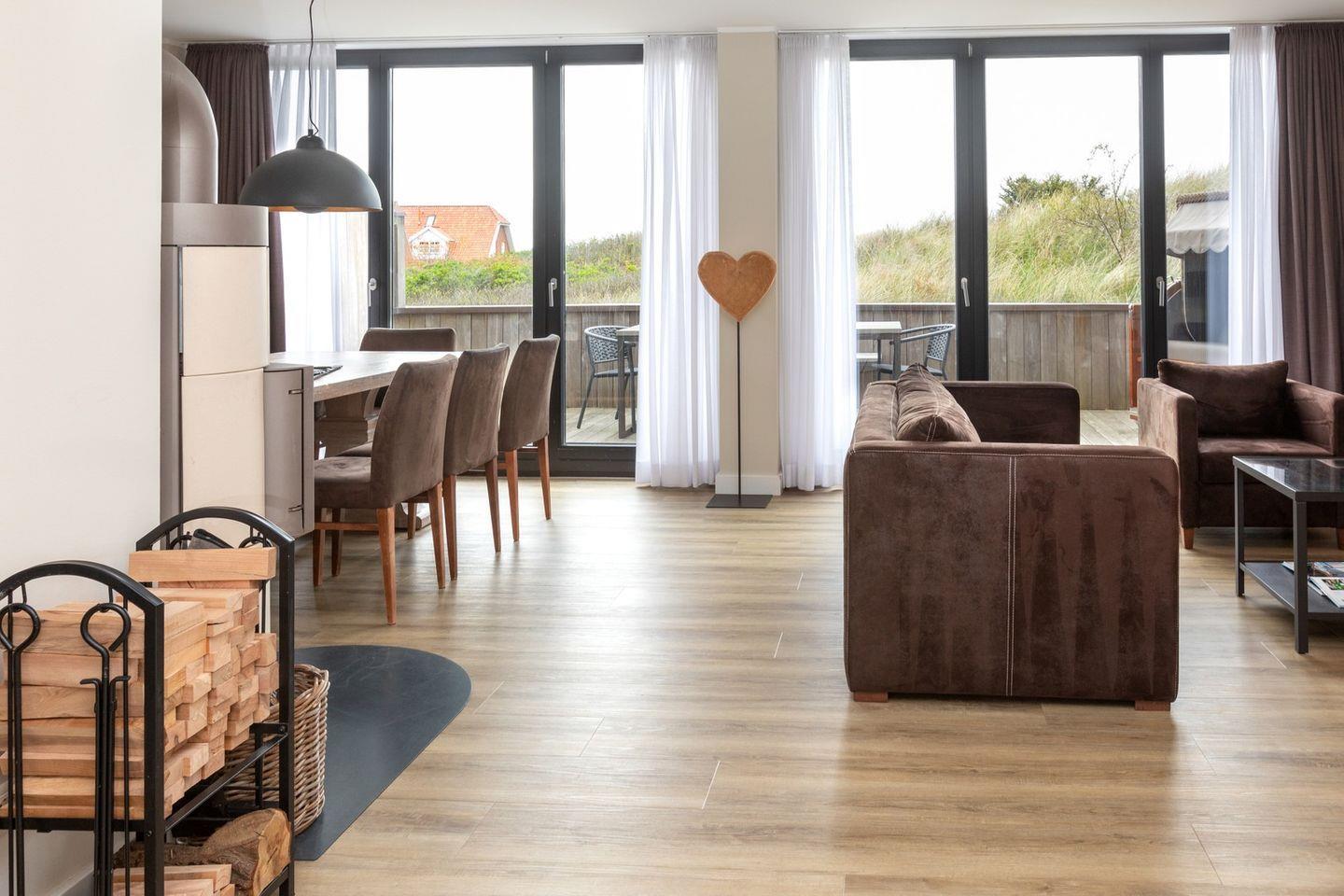 Traumhaftes Reetdachhaus (bis 8 Pers.) direkt am Strandaufgang, stilvoll-modern im friesischen Design. Drei Etagen mit höchstem Komfort: 4 Schlafzimmer (alle mit TV), 4 Bäder (Badewanne), Wohnküche mit Kamin und großem Esstisch, gemütlicher Wohnbereich mit Dünenblick, Balkon und Terrasse mit Strandkorb. WLAN, Handtücher, Bettwäsche, Bademäntel, Pflegeprodukte sowie Waschmaschine/Trockner inklusive. Eigene Terrasse mit Strandkorb. Grillplatz zur Gemeinschaftsnutzung. 4 Leihfahrräder vorhanden. Hunde willkommen (€50/Woche). Perfekte Lage nahe Zentrum & Loog – ideal für Ihren Traumurlaub!