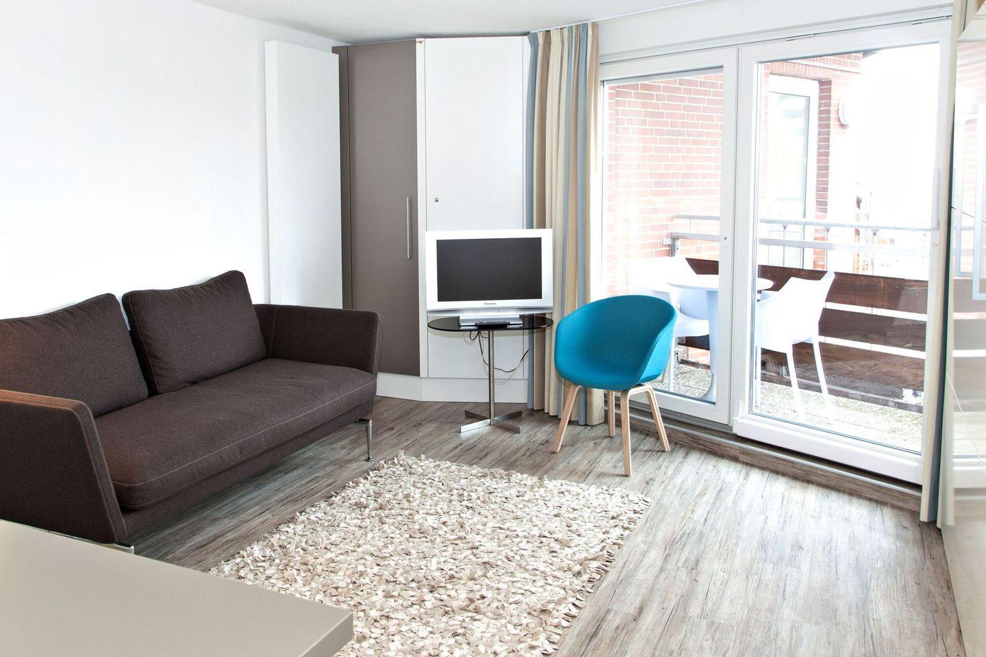 Das modern ausgestattete Apartment 406 Kleine Wolke auf Juist bietet mit 26 m² Platz für zwei Personen und verfügt über einen Balkon mit eingeschränktem Meerblick, eine offene Küche, WLAN sowie einen Aufzug. Es befindet sich im 3. Stock und liegt nur 400 Meter vom Sandstrand sowie in unmittelbarer Nähe zu Einkaufsmöglichkeiten und Restaurants.