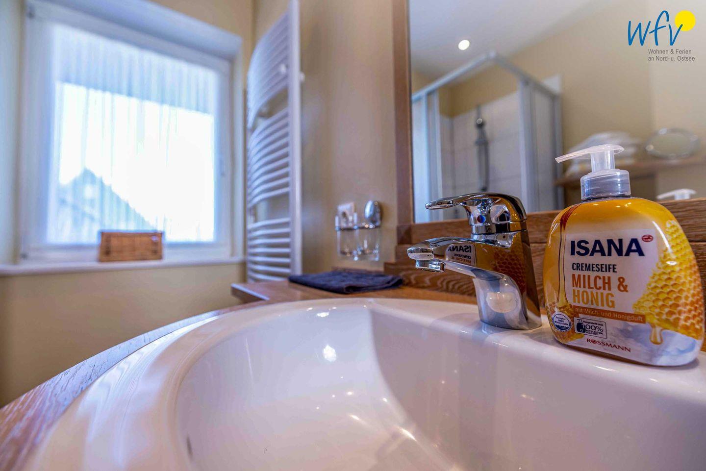 Für weitere Erholung sorgt der Saunabereich im Haus - ideal für wohltuende Wärme nach dem Strandspaziergang (bitte auf Anfrage).