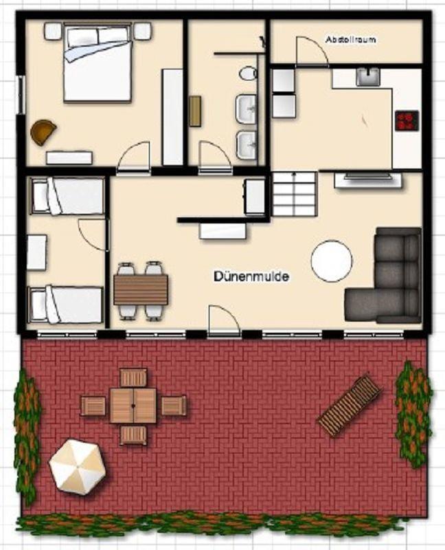 Die Ferienwohnung „Dünenmulde“ auf Juist verfügt über zwei separate Schlafzimmer, einen Wohnraum mit Sitz – und Essecke und eine separate Küche sowie über ein Badezimmer und einen Abstellraum. Vom Wohnraum aus gelangen Sie auf die möblierte Südterrasse, auf der Sie den ganzen Tag über herrliche Sonnenbäder genießen können.