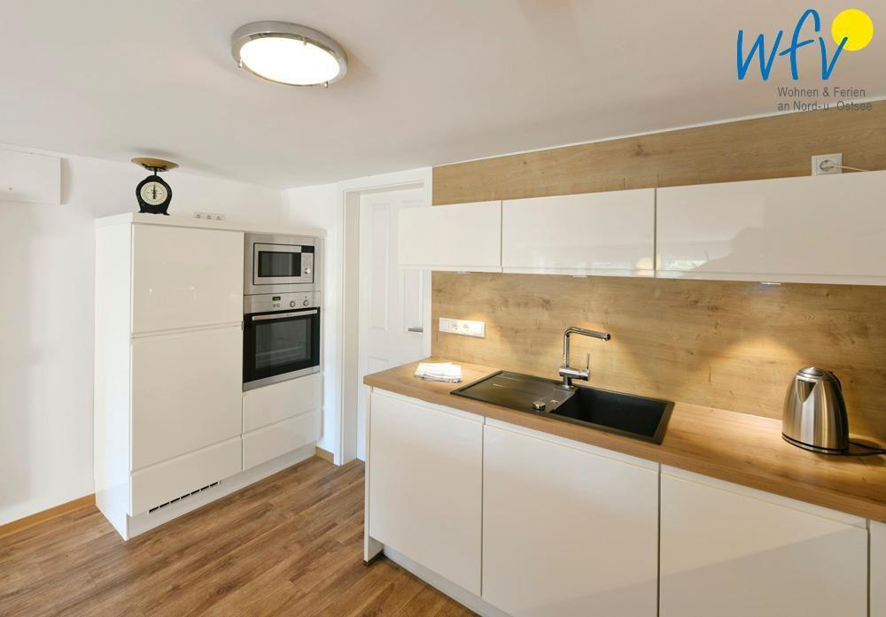 Die modern ausgestattete Küche (u.a. mit Induktionsherd, Backofen, Mikrowelle, Geschirrspüler, Kaffeemaschine, Wasserkocher und Toaster) ermöglicht eine bequeme Selbstverpflegung.