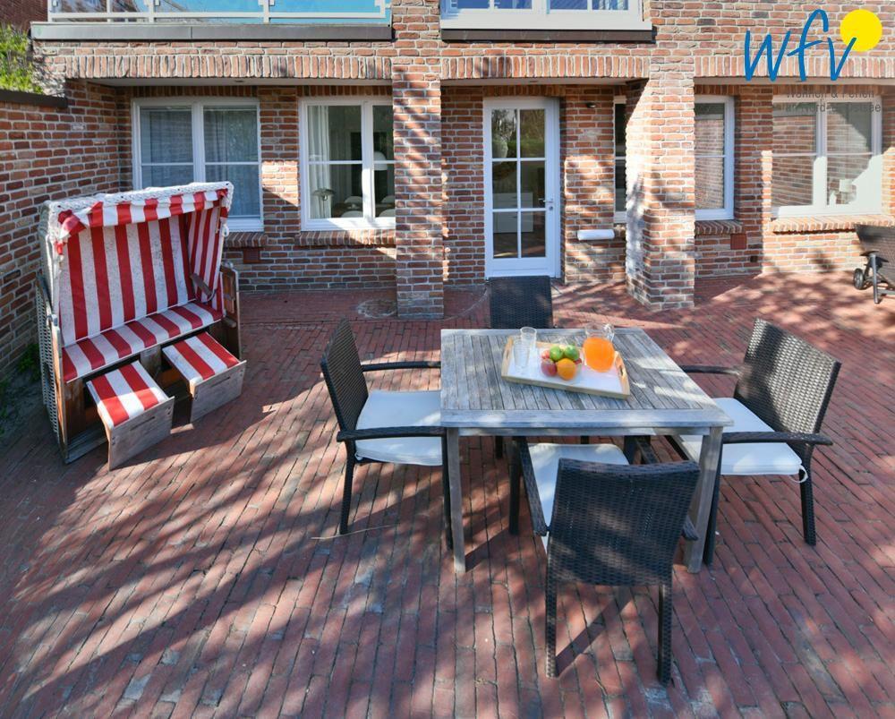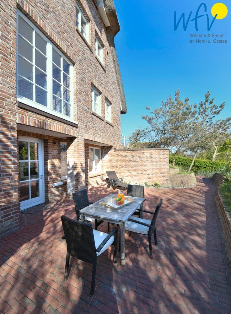 Die stilvolle Gartengeschosswohnung verfügt über 80 m² Wohnfläche und bietet Platz für bis zu vier Personen. Großzügige, lichtdurchflutete Räume vermitteln direkt ein einladendes Wohngefühl. Die Fensterfront erstreckt sich über die gesamte Breite des Hauses und führt auf die sonnige und geschützte Südterrasse, die in die Dünen eingebettet ist.