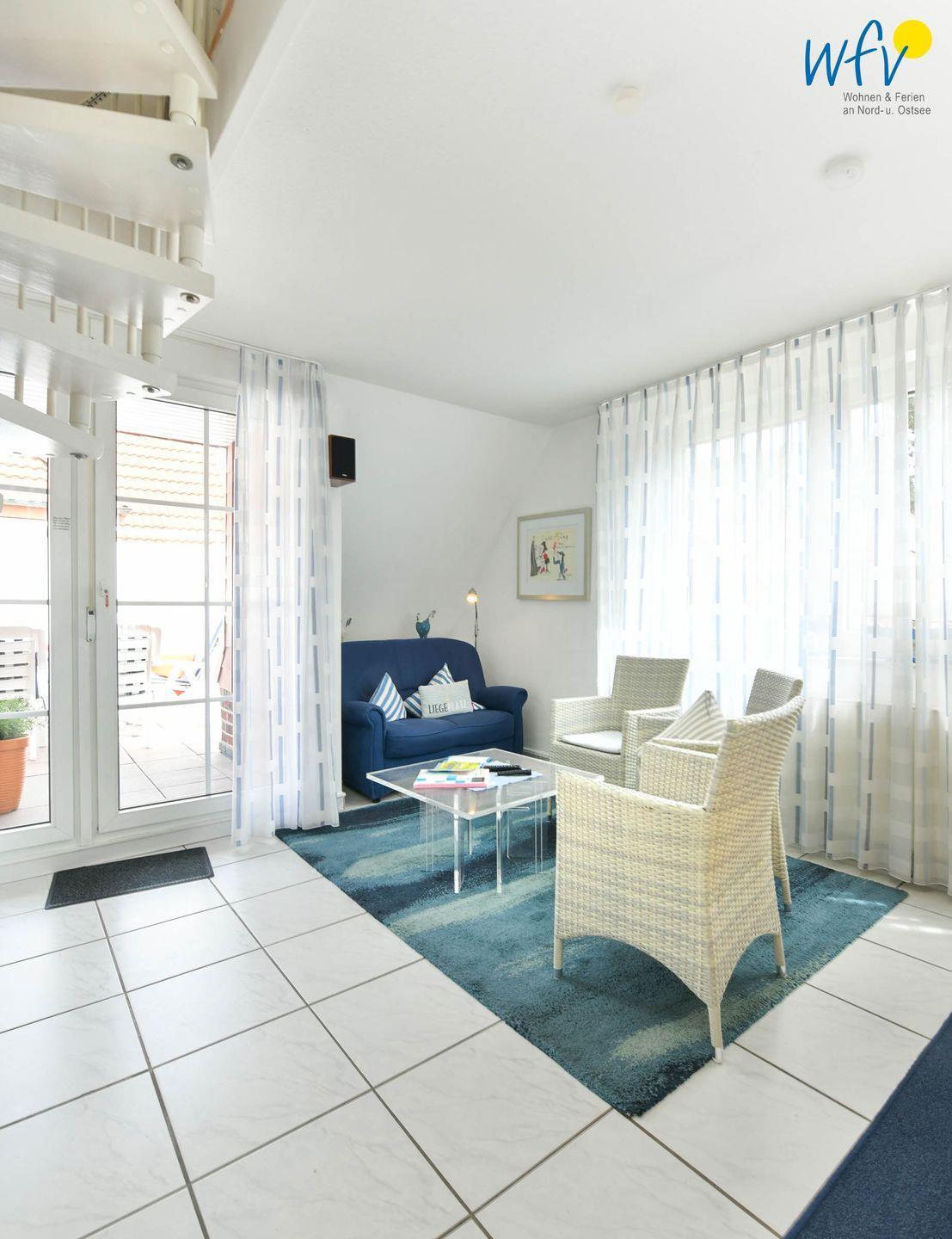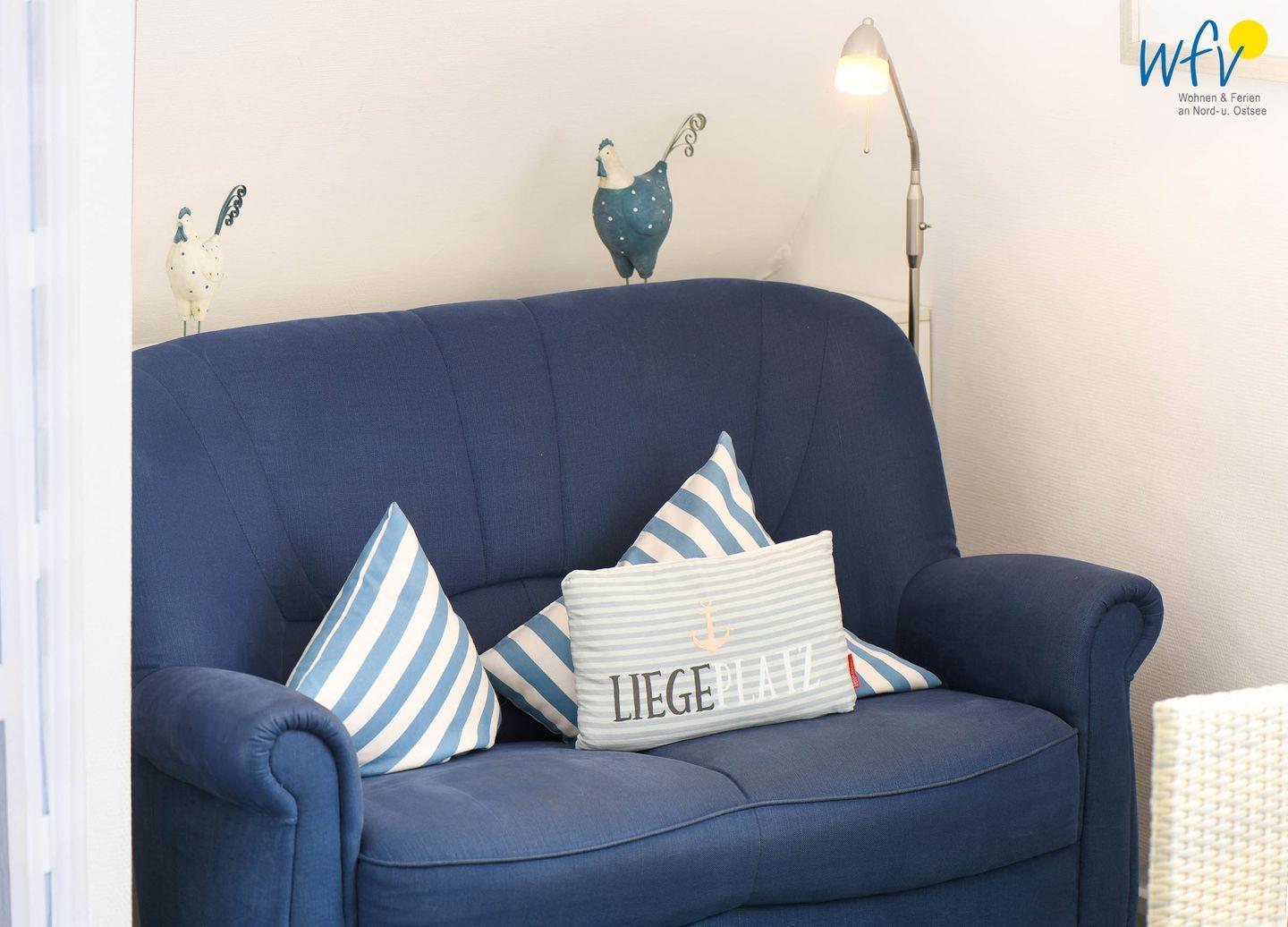 In dem gemütlichen Wohnraum erwartet Sie eine Sitzecke mit Couch, Sesseln und Flachbildfernseher (Kabel-TV). Zum Surfen vom Smartphone aus empfangen Sie kostenlos freies WLAN.
