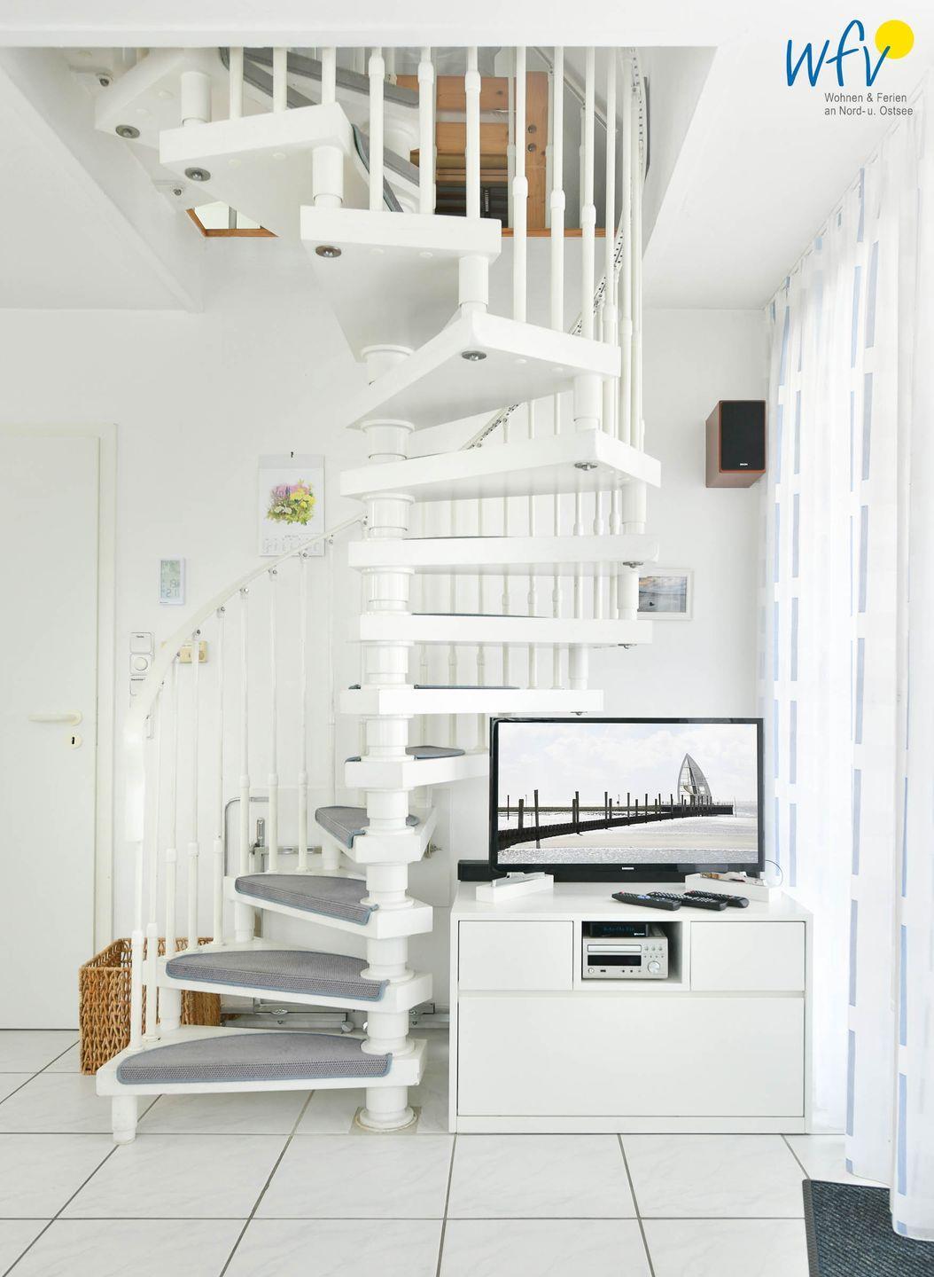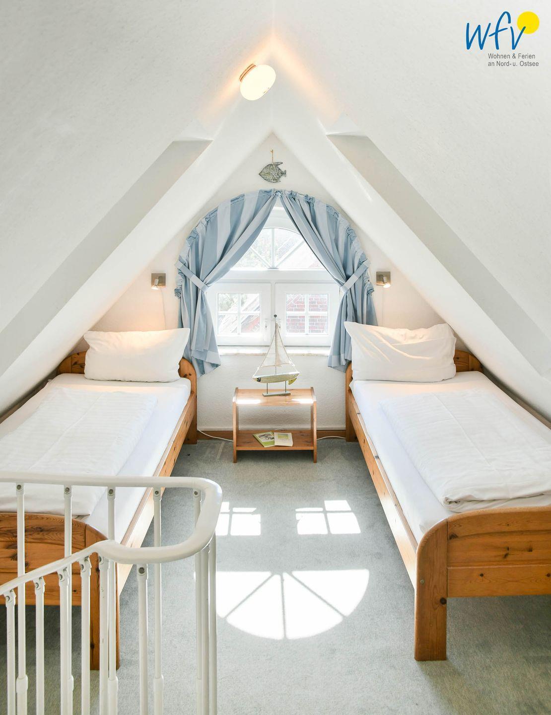 Die Unterkunft erstreckt sich über zwei Etagen und besitzt damit eine sehr vorteilhafte Raumaufteilung. Im ersten Obergeschoss befindet sich ein großzügiger Wohnraum mit Sitzecke, Essbereich und Wohnküche, ein Duschbad und ein separates Schlafzimmer für zwei Personen. Das Dachgeschoss ist als separate Schlafetage eingerichtet, in der vier weitere Personen Platz haben.