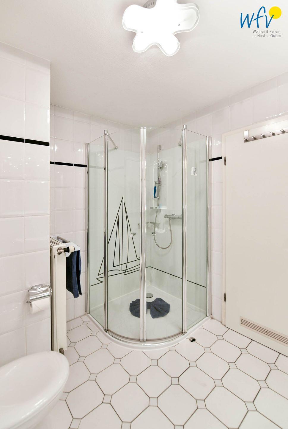 In dem großzügigen Duschbad sorgt ein Bidet für zusätzlichen Wohnkomfort.