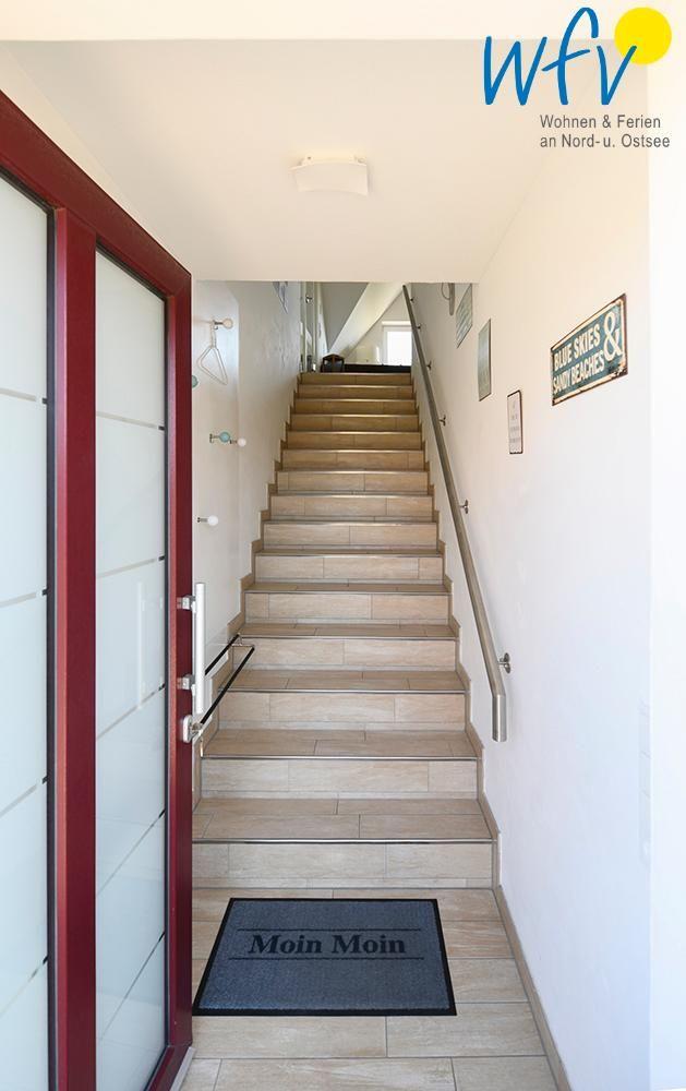 Die Juister Ferienwohnung erstreckt sich über zwei Etagen und bietet somit eine sehr vorteilhafte Raumaufteilung. In der ersten Etage befindet sich ein großzügiger Wohnraum mit angrenzender Küche und Essbereich, ein separates Schlafzimmer, zwei Badezimmer, ein Abstellraum, zwei Garderoben und ein Balkon. Im Dachgeschoss erwartet Sie ein weiterer separater Schlafraum mit vier Stapelbetten.