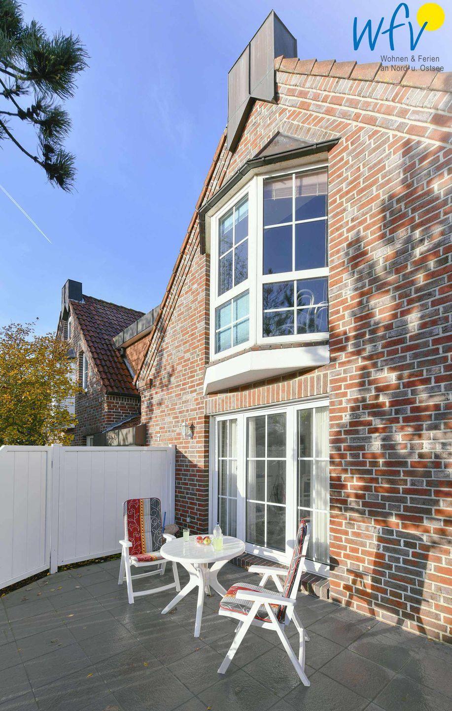 Highlight unserer Ferienwohnung auf Juist ist die große Süd-Ost-Terrasse! Gemütliche Gartenmöbel (Tisch, Stühle und Sonnenschirm) machen die Terrasse zu einem herrlichen Entspannungsort.
