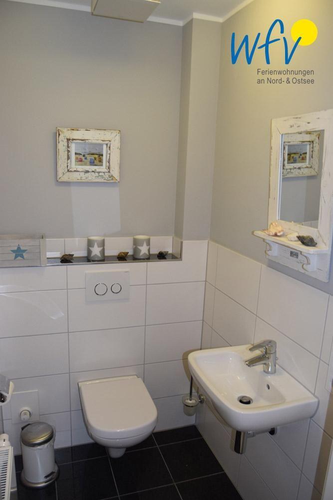 Durch das moderne Tageslichtbad mit Waschbecken, WC und ebenerdiger Dusche sowie dem zusätzlichen Gäste-WC bestehen angenehme Ausweichmöglichkeiten bei einem Aufenthalt mit mehreren Personen.