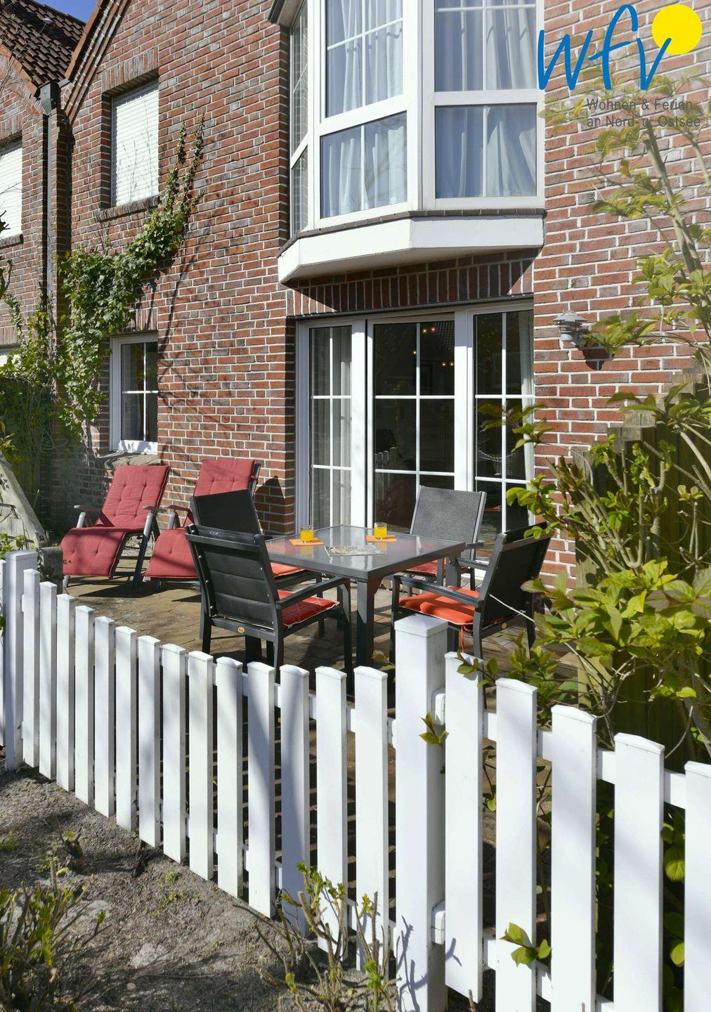 Auch die sonnige Süd-Ostterrasse lädt zum Ausspannen ein: Ein perfekter Wohlfühlort, um mit der Familie zusammenzusitzen und die frische Nordseeluft zu genießen!