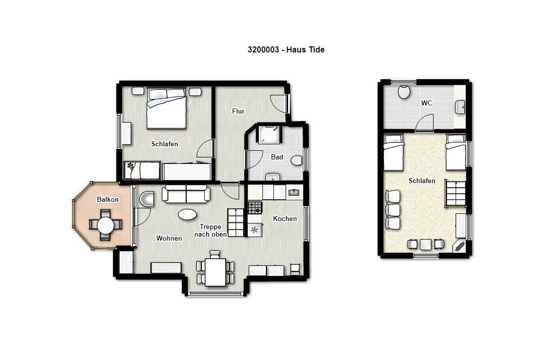 Eine vorteilhafte Aufteilung über zwei Etagen, großzügige helle Räume und eine geschmackvolle Einrichtung machen unserer Ferienwohnung „Bremer“ zu einem gemütlichen Zuhause für Ihren Juist-Urlaub.