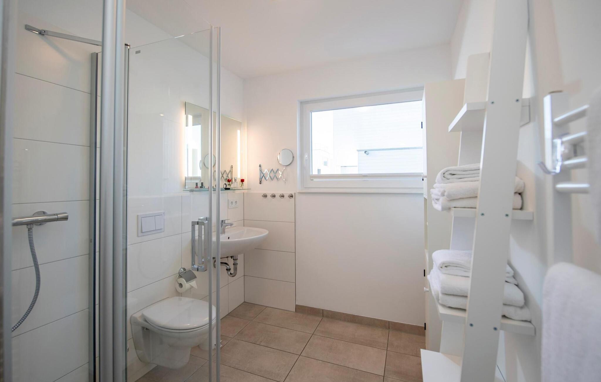 Når I tager en sauna eller børster tænder, kan I selvfølgelig også se havet og svanerne svømme forbi.