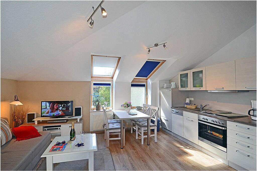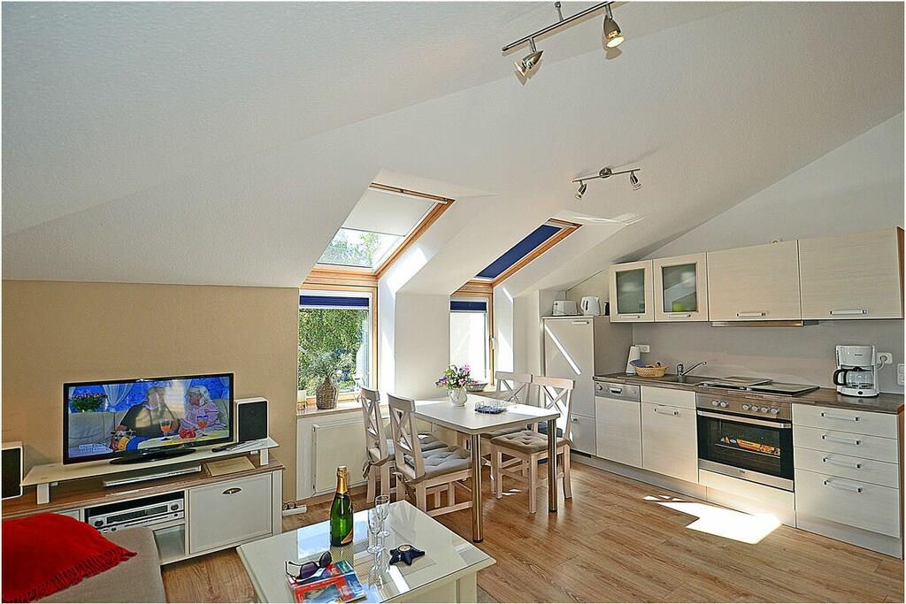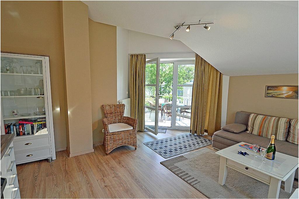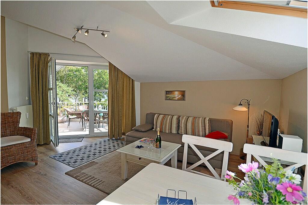 Gemütlicher Wohn- & Essbereich mit Couch (Schlaffunktion), TV/ Sat (Flatscreen) , Radio/ CD, Internet (WLAN) steht kostenfrei zur Verfügung, sehr gute offene komplett ausgestattete Einbauküche mit Esstisch, 4-Plattenherd (Ceranfeld), Backofen, Kühlschrank mit kleinem Gefrierfach, Geschirrspüler, Bad mit Badewanne und WC , Fön und Kosmetikspiegel, Schlafzimmer mit Doppelbett (2 Matratzen je 90cm x 200cm) und Kleiderschrank, TV/ Sat (Flatscreen), für die Kleinen steht ein Kinderbett und Hochstuhl zur Verfügung, Zugang zum Balkon vom Wohnzimmer mit Meerblick, großer Balkon mit 4 Stühlen und Tisch “Ostseeurlaub – in exklusiver Lage mit eigenem Strandzugang“ Die Ferienwohnung „Abendsonne“ mit eigenem Strandzugang und Strandkorb ist liebevoll eingerichtet. Es ist eine Nichtraucherwohnung. Für Leseratten gibt es spannende Bücher. Kinderbett sowie Bügelbrett und Bügeleisen sind vorhanden. Der Wellness- und Saunabereich mit Fitnessraum steht Ihnen kostenlos zur Verfügung. Ein Fahrradabstellraum (verschließbar), Waschmaschine & Trockner (Münzgerät) befinden sich im Gemeinschaftskeller. Ca. 2 km entfernt in Altenkirchen finden Sie einen Netto, das Kaufhaus „Stolz“, Edeka und einen Getränkemarkt. Restaurants und Radverleih sind in der Nähe. Der ca. 2 km entfernte Hafen in Breege bietet Ausflugsmöglichkeiten per Schiff zur Insel Hiddensee, Boddenfahrten, Kranichfahrten und zu den Störtebeker-Festspielen. Es gibt optimale Rad- und Wandermöglichkeiten um die Insel zu erkunden. Der PKW-Stellplatz befindet sich direkt am Objekt. Haustiere mit Rücksicht auf Allergiker leider nicht gestattet!