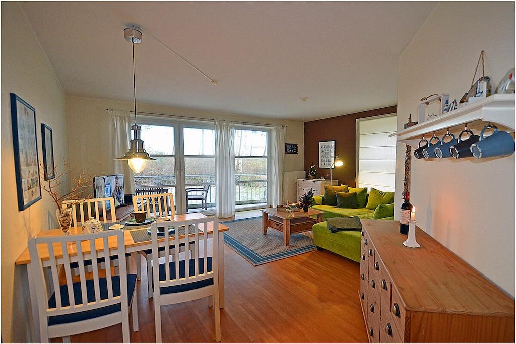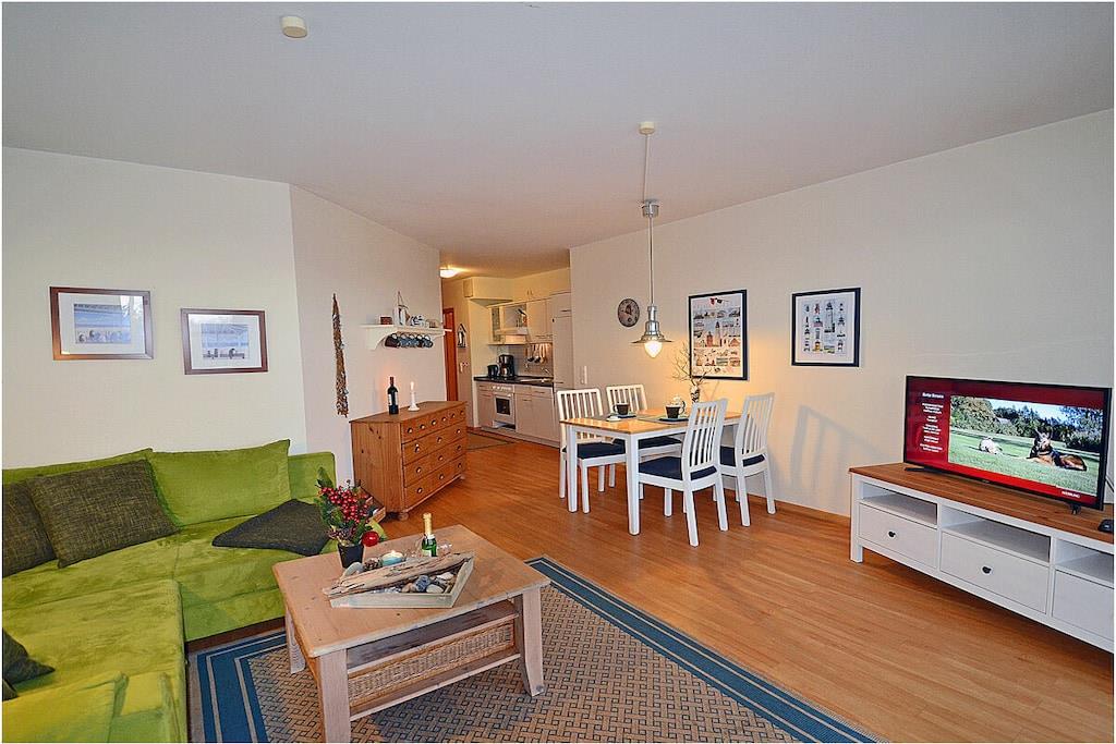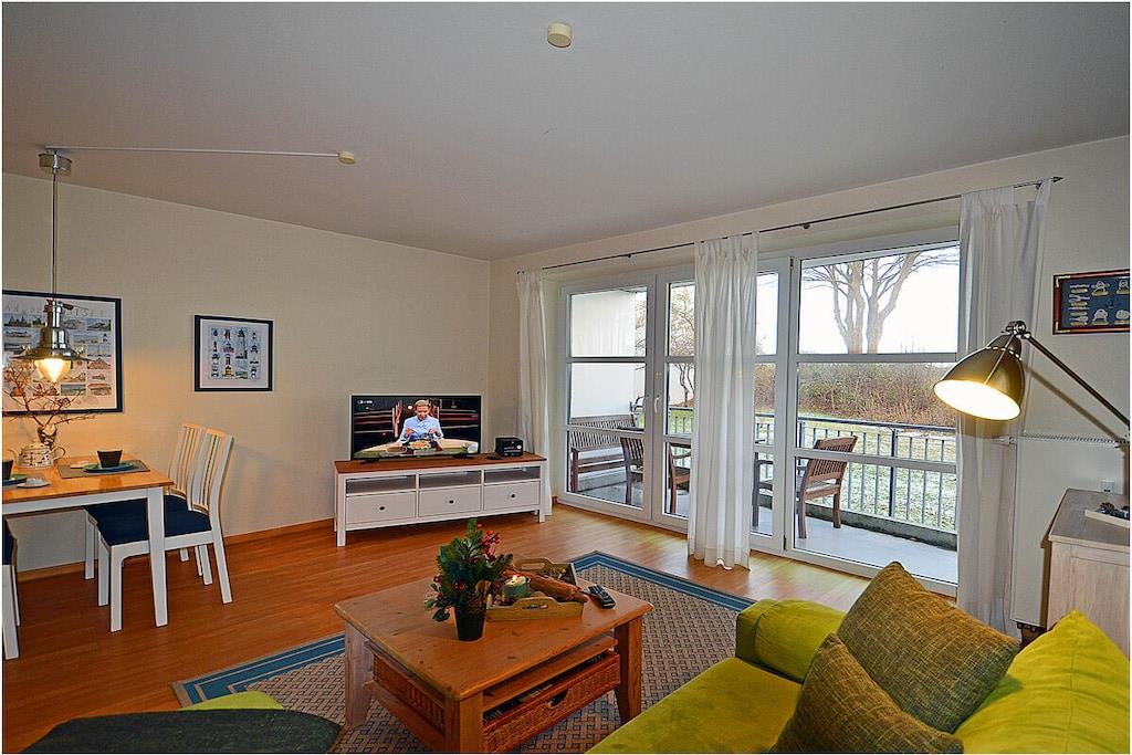 Seebad Juliusruh, Hochparterre, komfortabel Ausstattung, ruhige Lage direkt hinter der Düne, 30 m zum Sandstrand (Ostsee), ca. 2000 m zum Hafen Breege Wohn- Essbereich mit gemütlicher Sofalandschaft mit Schlaffunktion, Balkonzugang, TV/ Sat (Flachbildschirm), moderne offene komplett ausgestattete Einbauküche mit 4- Plattenherd (Ceranfeld), Backofen, Kühlschrank mit kleinem Gefrierfach, Geschirrspüler und diversen Elektrogeräten, Schlafzimmer mit Doppelbett, Kleiderschrank und TV sowie Insektenschutz,, komfortables Bad mit Dusche/ WC, Balkon in Richtung Ostsee mit Gartenmöbeln privater Strandzugang, Wellness- und Saunabereich mit Fitnessraum steht kostenlos zur Verfügung, verschließbarer Fahrradraum vorhanden, Waschmaschine & Trockner (Münzgerät) im Gemeinschaftskeller, Blick vom Strand bis nach Kap Arkona, Nichtraucher, Einkaufsmöglichkeiten, Bäcker und Restaurant in unmittelbarer Nähe, vom ca. 2 km entfernten Hafen sind Ausflugsmöglichkeiten per Schiff zur Insel Hiddensee und zu den Störtebeker-Festspielen möglich, Segelschule, optimale Rad- und Wandermöglichkeiten, PKW- Stellplatz am Objekt, Haustiere nach Absprache (Gebühr Euro 5,-/ pro Haustier/ pro Nacht)