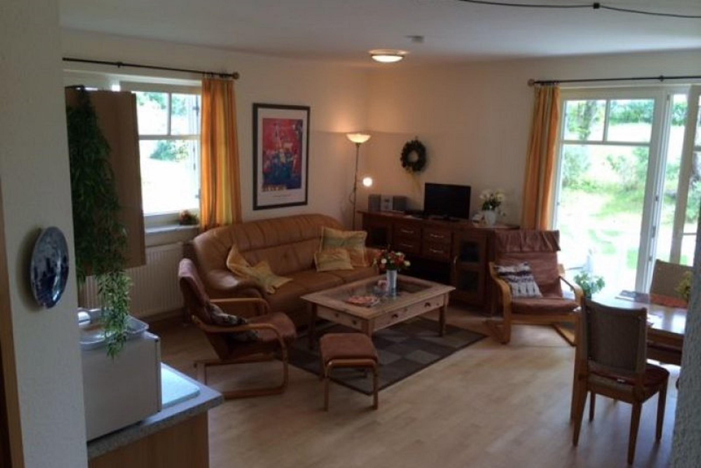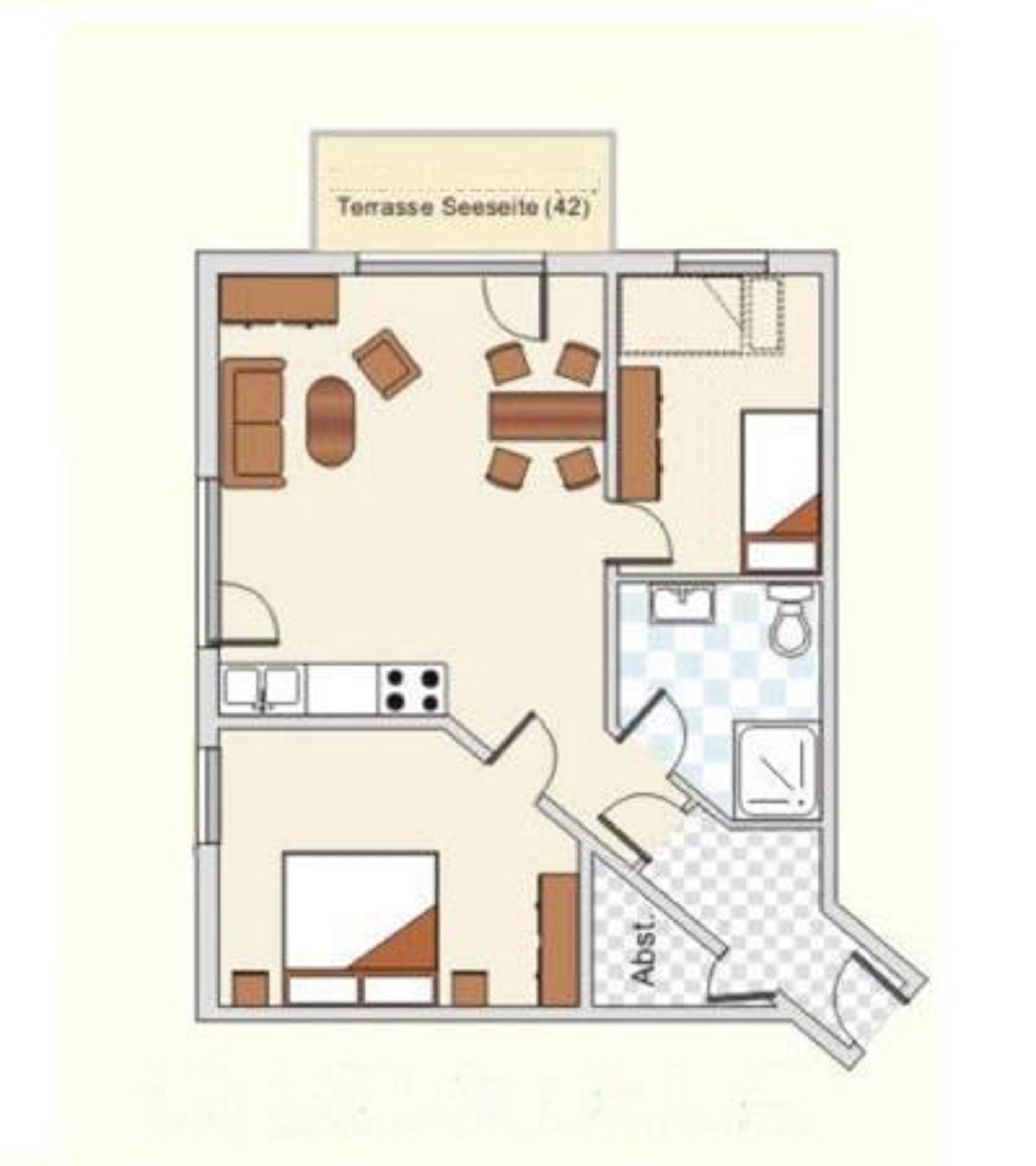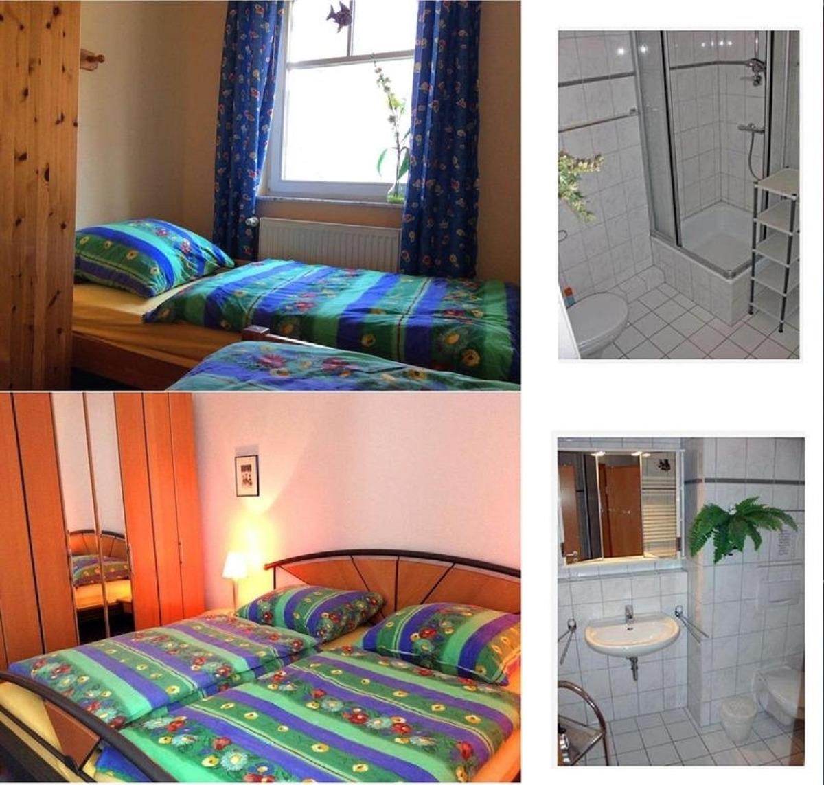 Es stehen Ihnen ein Wohnzimmer mit Küchenzeile , ein Schlafzimmer mit Doppelbett und Fernseher, und ein Schlafzimmer mit zwei Einzelbetten zur Verfügung. Als fünftes Bett kann ein Klappbett 90x200cm dazu gestellt werden. Ein Badezimmer mit Dusche/WC und Spiegelschrank und Fön, sowie ein Flur mit Garderobe und ein Abstellraum.