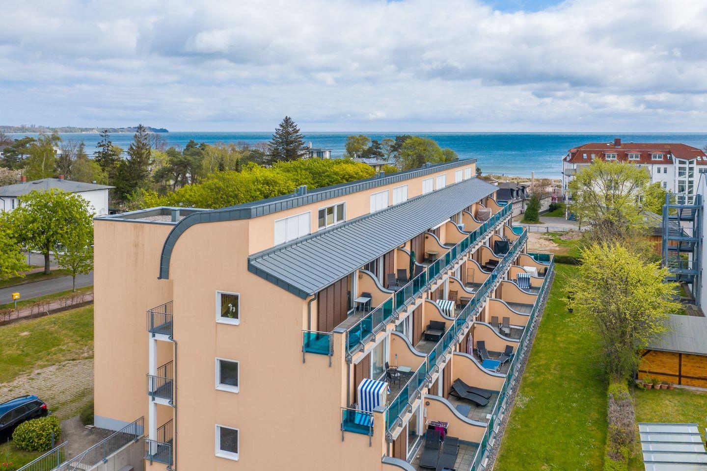 Genießen Sie entspannte Tage in der Ferienwohnung „Dünenrose“, nur wenige Meter vom 10 Kilometer langen Sandstrand der Schaabe entfernt. Die moderne Ferienwohnung bietet auf 50 Quadratmetern Platz für bis zu vier Personen und ist barrierefrei zugänglich. Der helle Wohnbereich mit Schlafcouch und SAT-TV öffnet sich zum sonnigen Südbalkon – perfekt, um abends das Meeresrauschen zu genießen. Die offene, voll ausgestattete Küche und der Esstisch für vier Personen laden zu gemeinsamen Mahlzeiten ein. Für ruhige Nächte sorgt das separate Schlafzimmer mit Doppelbett. Das Badezimmer ist modern und komfortabel mit Dusche und Fenster ausgestattet. WLAN und ein Tiefgaragenstellplatz stehen kostenfrei zur Verfügung. Die Nichtraucherwohnung ist haustierfrei und bietet damit die beste Umgebung für eine unbeschwerte Auszeit an der Ostsee.
