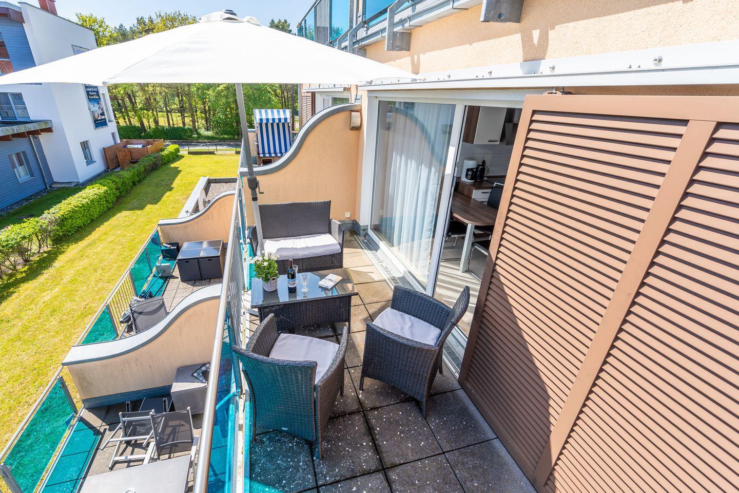Helle Ferienwohnung mit großem Südbalkon, wenige Meter zum Strand