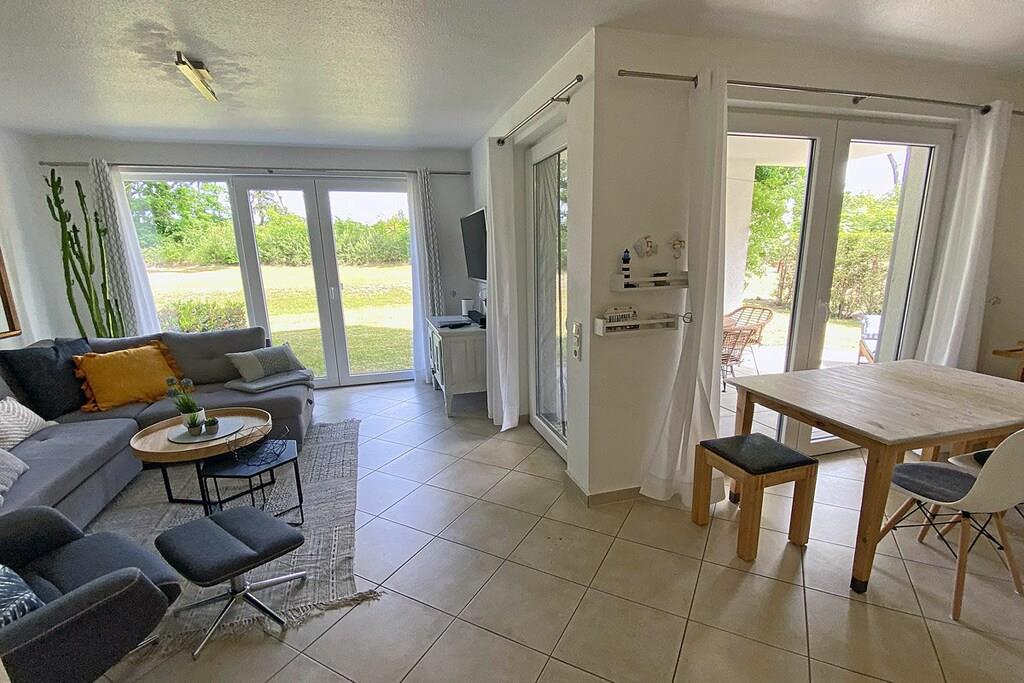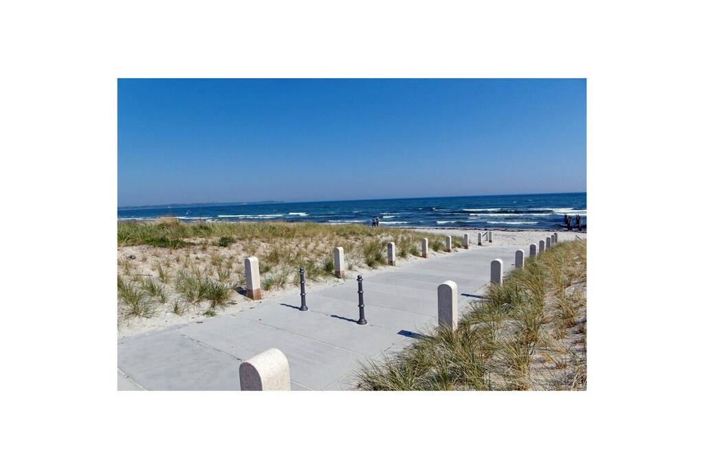 Wohn- Essbereich mit gemütlicher vollwertiger Ausziehcouch (140cm × 200cm) und Sessel, Terrassenzugang, TV/ Sat (Flatscreen), kostenfreies Internet (WLAN), Radio (Empfang über TV), moderne offene komplett ausgestattete Einbauküche mit 4-Plattenherd (Ceranfeld), Backofen, Mikrowelle, Kühlschrank mit kleinem Gefrierfach, Geschirrspüler und diversen Elektrogeräten, großzügiges Schlafzimmer mit Doppelbett (160 x 200 / durchgehende Matratze) und TV, großer Kleiderschrank, Tresor und Terrassenzugang, komfortables Bad mit Dusche/WC, Fön und Kosmetikspiegel, überdachte Terrasse mit Gartenmöbeln. “Besonderer Traumurlaub in faszinierender Lage direkt am Sandstrand“ Die Stranddüne ist komfortabel und modern eingerichtet. Alle Räume sind mit Fußbodenheizung ausgestattet. Die Terrasse mit gemütlichen Gartenmöbeln laden zum Verweilen und Entspannen ein. Von der Wohnung aus haben Sie einen direkten Zugang zum feinsandigen Badestrand mit Blick vom Wasser bis nach Kap Arkona. Die „Stranddüne“ ist ein Nichtraucherquartier. Waschmaschine und Trockner stehen im Gemeinschaftsraum gegen Gebühr (3-5 Euro) zur Verfügung. Abschließbare Fahrradabstellmöglichkeit ist im Keller vorhanden. Für Klein und Groß gibt es diverse Sport und Strandspiele. Und für die gemütlichen Abende Bücher und Gesellschaftsspiele. Einkaufsmöglichkeiten, Bäcker und Restaurants in unmittelbarer Nähe. Vom ca. 2 km entfernten Hafen in Breege sind Ausflugsmöglichkeiten per Schiff zur Insel Hiddensee und zu den Störtebeker-Festspielen möglich. Es gibt zwei PKW-Stellplätze direkt am Objekt. Optimale Rad- und Wandermöglichkeiten um die Insel zu erkunden, runden das Angebot ab. Bei uns sind Hunde willkommen (Gebühr Euro 5,-Euro pro Nacht).