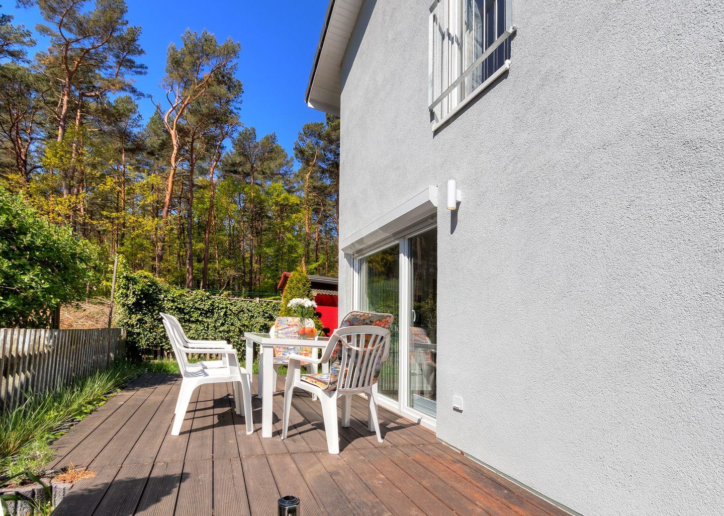 Das Schwalbennest liegt am Waldrand, fast in der Mitte der Insel Usedom und in fußläufiger Nähe zum Strand.