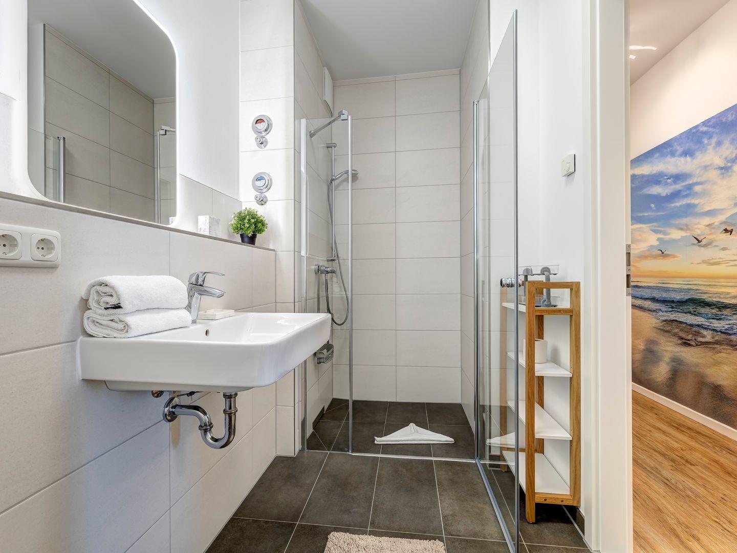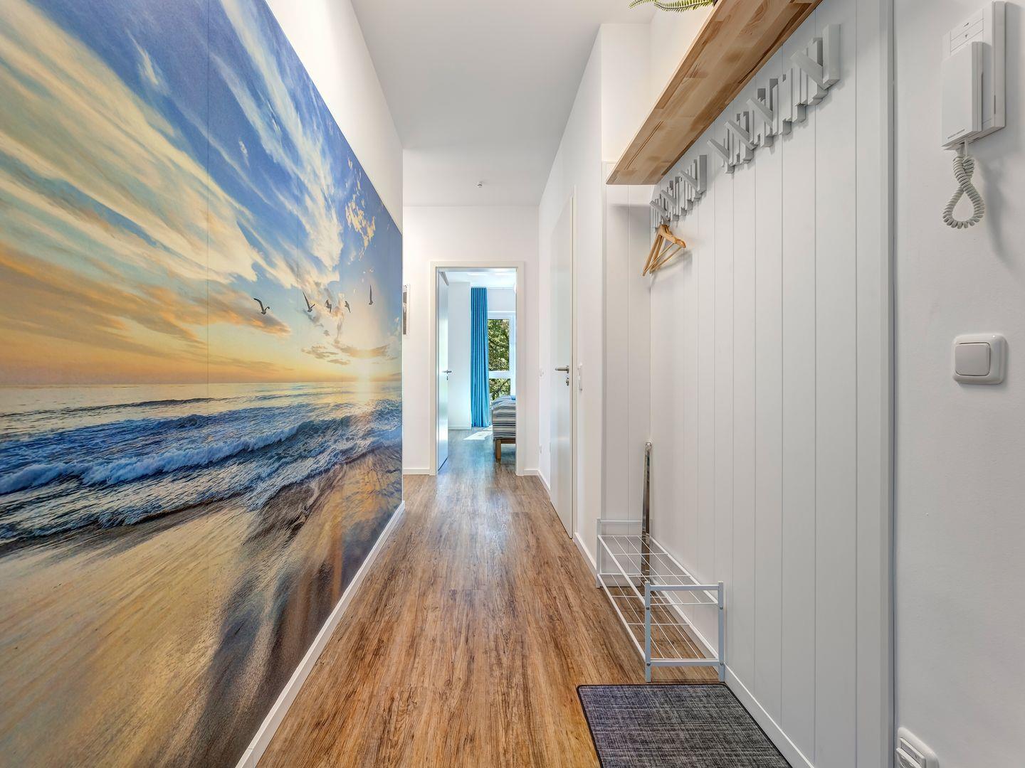 Die neue, allergikerfreundliche Wohnung „Ostseeliegeplatz 61“ im 2. OG ist hell, hochwertig eingerichtet und bietet mit Fußbodenheizung und elektrischen Rolläden höchsten Komfort. Zwei Schlafzimmer für 4 Personen und ein großes Wohnzimmer mit ausziehbarer Sitzecke sorgen für Gemütlichkeit. Die moderne Küche und der Essbereich laden zu gemeinsamen Mahlzeiten ein. Ein Balkon bietet Aussicht, zwei Duschbäder und WLAN sind vorhanden. Tiefgaragenparkplatz inklusive.