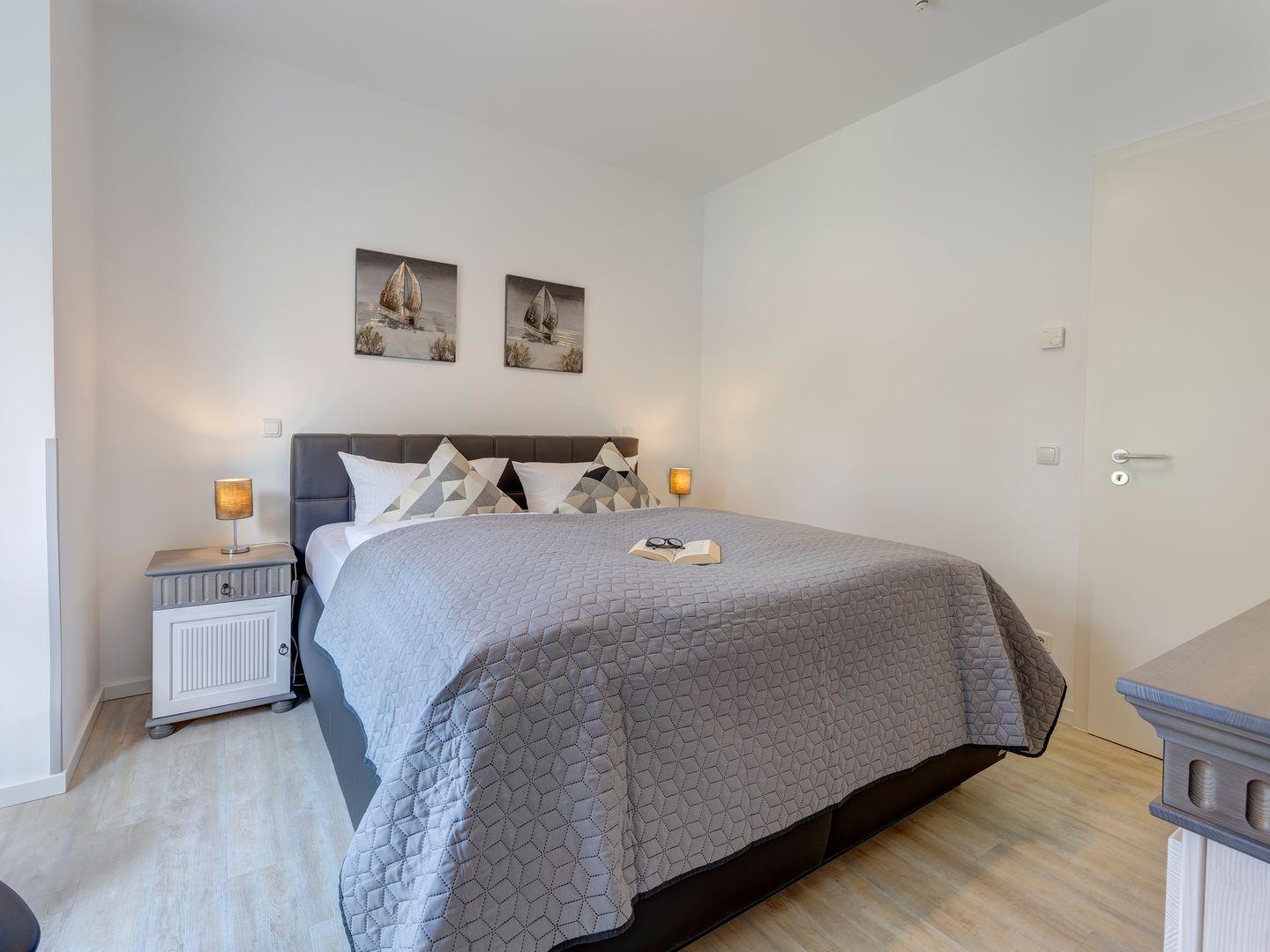Die Schlafzimmer sind jeweils mit einem Boxspringbett ausgestattet.