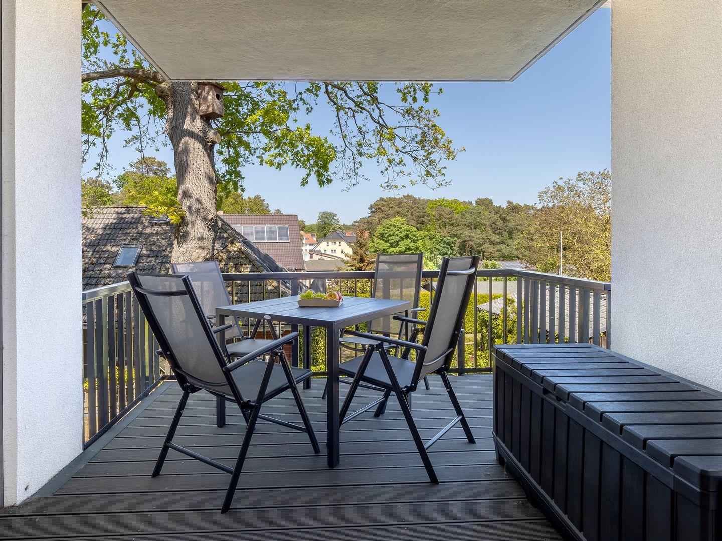 Zwei Schlafzimmer mit Doppelbetten und ein Schlafsofa im Wohnzimmer bieten Platz für bis zu fünf Erwachsene und ein Kleinkind. Starten Sie Ihren Tag mit einem Frühstück auf dem überdachten Balkon und genießen Sie die Morgensonne im hellen Wohnbereich. Die voll ausgestattete Küche lädt Hobbyköche zum gemeinsamen Kochen ein. Das moderne Bad mit ebenerdiger Dusche sorgt für einen erfrischenden Start und höchsten Komfort.