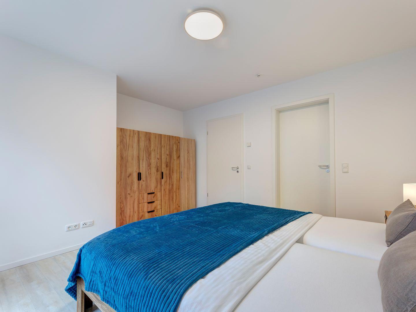 Diese großzügige Wohnung verbindet Luxus mit Hochwertigkeit und bietet Ihnen alles, was Sie für einen entspannten Urlaub benötigen. Zwei geschmackvoll eingerichtete Schlafzimmer mit gemütlichen Doppelbetten sowie ein Schlafsofa im Wohnzimmer bieten ausreichend Platz für bis zu fünf Erwachsene und ein Kleinkind.