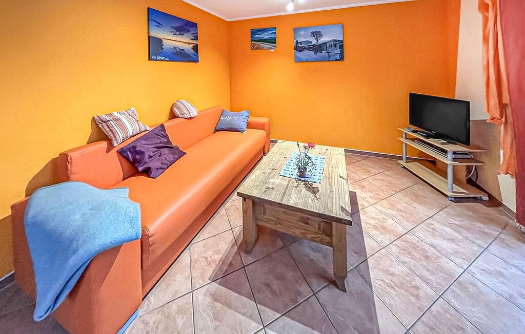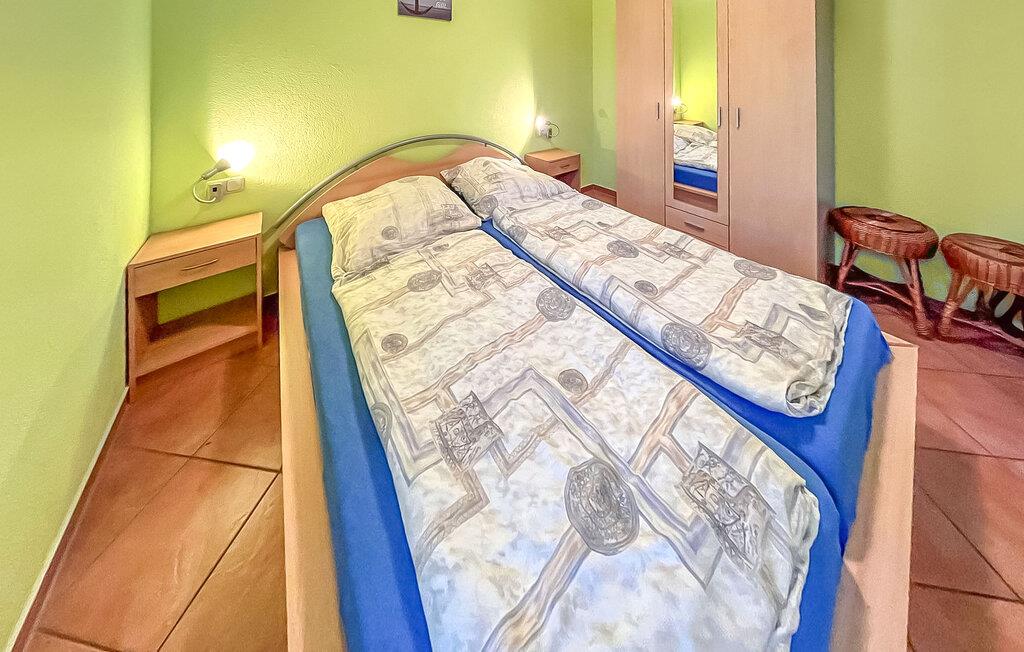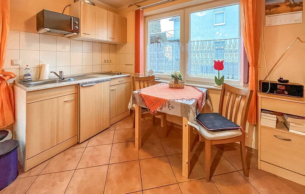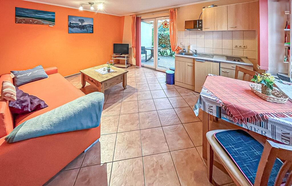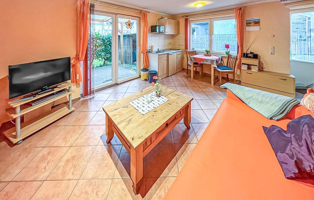 Denne ene af tre ferielejligheder ligger i et separat rækkehus-stil med separat adgang. Rolig beliggenhed på en sidegade, ca. 500 m fra stranden. Lejligheden har opholdsstue (dobbelt sovesofa, spiseplads, TV, radio), soveværelse med dobbeltseng, pantry køkken med 2-plade komfur og mikroovn, bad/WC, centralvarme. Lejligheden har en møbleret terrasse med grill og en gratis parkeringsplads. Mulighed for brug af vaskemaskine efter aftale. Den samlede pris inkluderer: sengelinned, vand og energiforbrug. Du skal selv medbringe håndklæder. Kæledyr: En lille hund (ikke en kat) på op til 40 cm er tilladt i denne ejendom. Medbring venligst en måtte/sovemulighed (tæppe, kurv) til dit dyr. Denne lejlighed har en størrelse på 40 kvadratmeter. og er placeret til venstre i FH. Badebyen Kölpinsee er et distrikt i Loddin kommune i den midterste del af øen Usedom, på det smalle punkt mellem Østersøen og Achterwasser. Østersøstranden ved Kölpinsee er bred og særlig fin. Samtidig lover stedet fred og afslapning ved Achterwassers indre kyst og er et interessant sted at bo, især for lystfiskere, takket være Kölpinsee, som er rig på fisk. Der er en multi-generation legeplads på promenaden. Fra maj til oktober finder forskellige arrangementer sted i den lokale spa-pavillon med udsigt over søen Kölpinsee. Der er også restauranter og butikker i byen, en ridestald og udlejning af cykel, båd og strandstole.