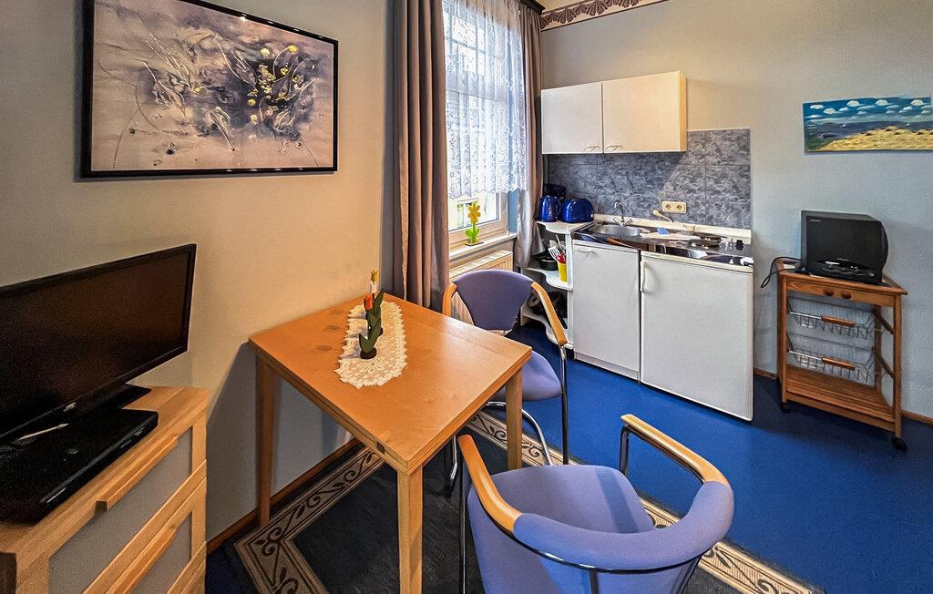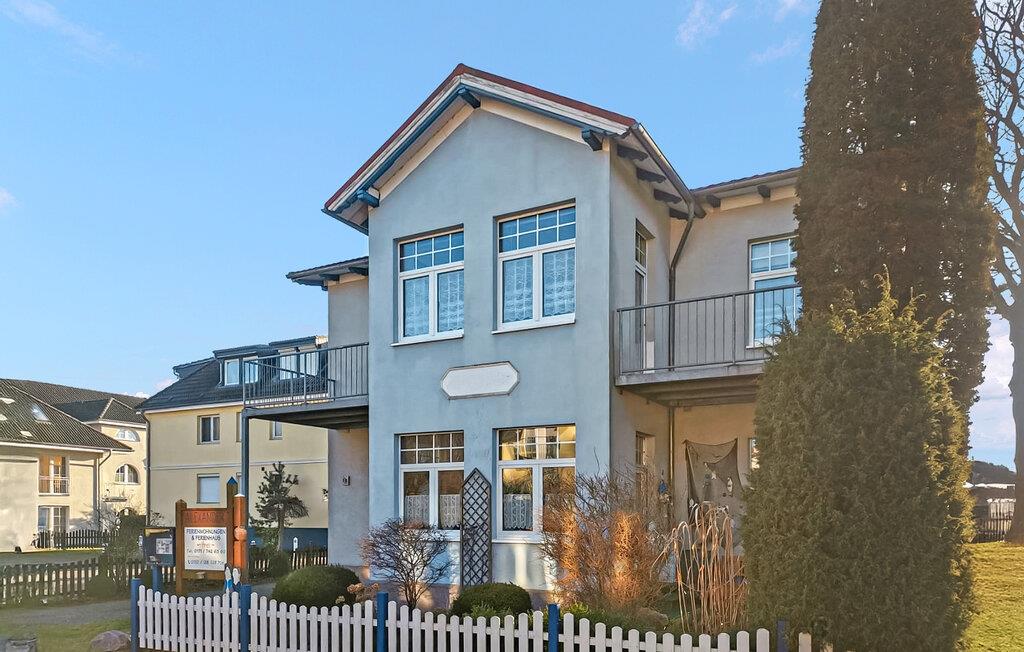 De seks ikke-ryger ferielejligheder af forskellig størrelse og indretning ligger separat i stueetagen og øverste etage i en lejlighedsbygning med en central beliggenhed. Der er også et sommerhus (DZV870) på ejendommen. Østersøstranden med strandpromenade, restauranter/caféer og Usedomer Bäderbahn togstation ligger inden for cirka 500 m. Den lille 1-værelses lejlighed til 2 personer ligger på øverste etage og har en møbleret balkon. Den er udstyret med kombineret stue/soveværelse med åbent tekøkken (dobbeltseng, sidde- og spiseplads, fladskærms-tv, elektrisk kogeplade, køleskab med fryseboks, mikroovn, diverse køkkenmaskiner), samt badeværelse med bruser. /toilet. Der er et centralt udendørs opholdsområde med grillfaciliteter på den 820 kvm store ejendom. Der er også opbevaringsplads til cykler og parkeringsplads til biler. En barneseng og høj stol kan stilles til rådighed for små børn. Der er også gratis WiFi. Lejeprisen inkluderer slutrengøring, sengetøj samt vand- og elforbrug. Håndklæder skal medbringes. Der skal betales en spaskat i feriestedet Kölpinsee ved Østersøen (betales på stedet) Kæledyr er ikke tilladt på denne ejendom. Badebyen Kölpinsee er et distrikt i Loddin kommune i den midterste del af øen Usedom, på det smalle punkt mellem Østersøen og Achterwasser. Østersøstranden i Kölpinsee er bred og særlig fin. Samtidig lover stedet fred og afslapning ved Achterwassers indre kyst og er et interessant sted at opholde sig, især for lystfiskere takket være den fiskerige Kölpinsee. Der er en multi-generation legeplads på promenaden. Forskellige arrangementer finder sted fra maj til oktober i den lokale spa-pavillon med udsigt over søen Kölpinsee. Restauranter og indkøbsmuligheder, en ridestald og udlejning af cykel, båd og strandstole er også placeret i byen.
