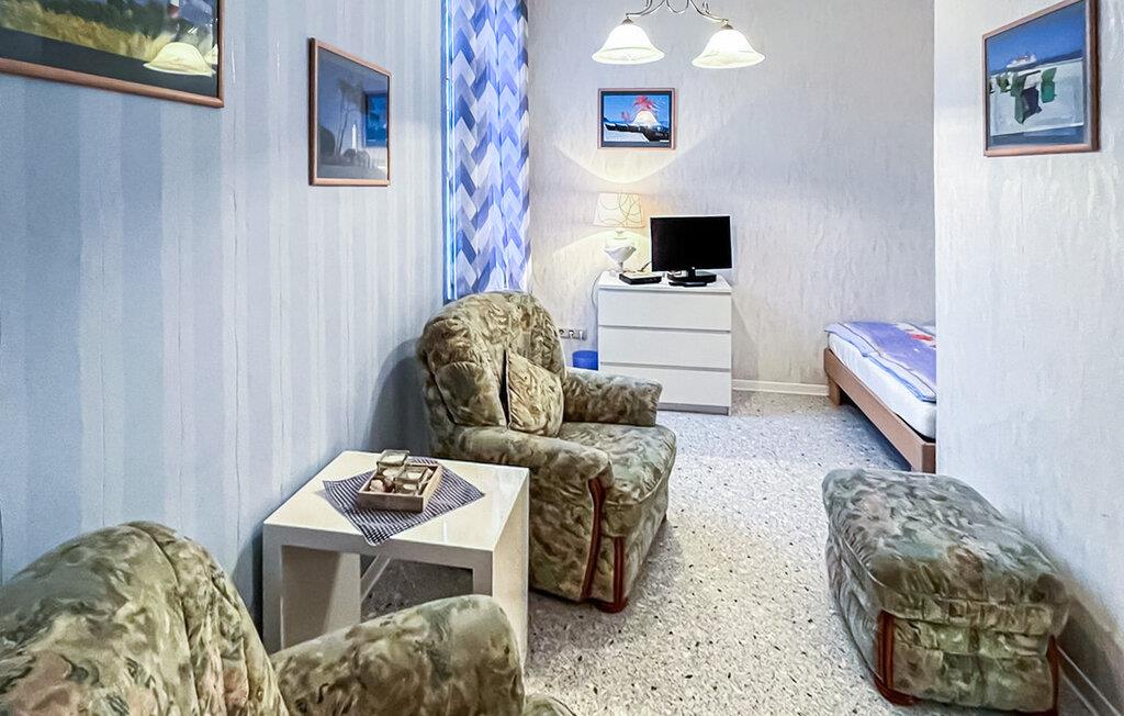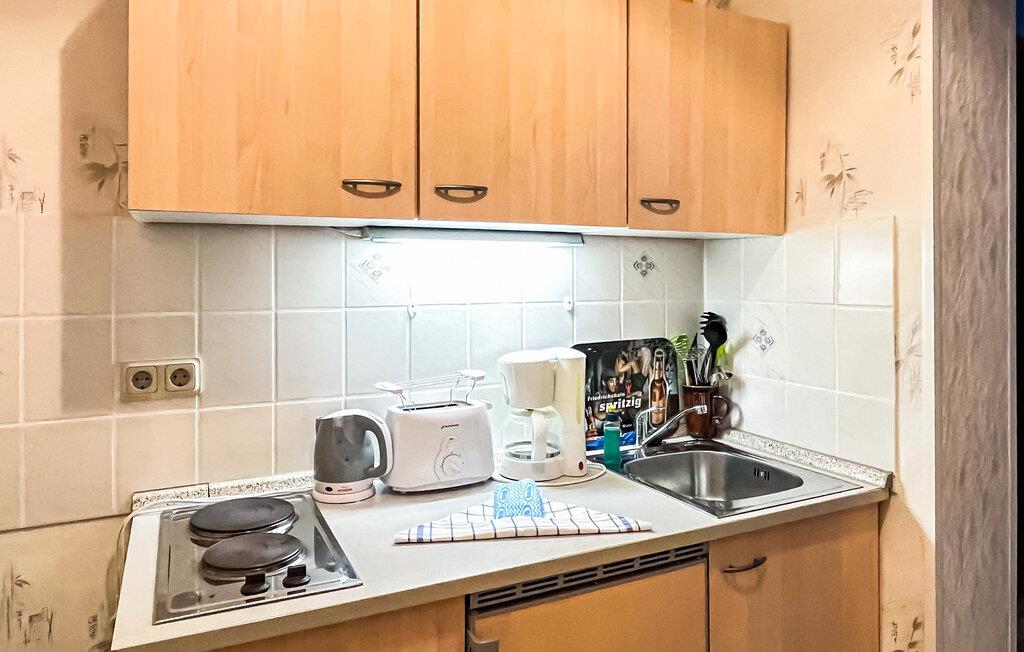 De seks ikke-ryger ferielejligheder af forskellig størrelse og indretning ligger separat i stueetagen og øverste etage i en lejlighedsbygning med en central beliggenhed. Der er også et sommerhus (DZV870) på ejendommen. Østersøstranden med strandpromenade, restauranter/caféer og Usedomer Bäderbahn togstation ligger inden for omkring 500 m. Den lille etværelses lejlighed til 2 personer ligger i stueetagen. Den er udstyret med en kombineret opholdsstue med åbent tekøkken (opholds- og spiseplads, fladskærms-tv, elektrisk kogeplade, køleskab med fryser, mikroovn, forskellige køkkenmaskiner), soveplads med dobbeltseng og badeværelse med bruser /toilet. Der blev indrettet et opholdsområde i indgangspartiet til lejligheden i stueetagen. Alternativt er der et centralt udendørs opholdsområde med grillfaciliteter på den 820 kvm store ejendom. Der er også opbevaringsplads til cykler og parkeringsplads til biler. En barneseng og høj stol kan stilles til rådighed for små børn. Der er også gratis WiFi. Lejeprisen inkluderer slutrengøring, sengetøj samt vand- og elforbrug. Håndklæder skal medbringes. Der skal betales en spaskat i feriestedet Kölpinsee ved Østersøen (betales på stedet) Kæledyr er ikke tilladt på denne ejendom. Badebyen Kölpinsee er et distrikt i Loddin kommune i den midterste del af øen Usedom, på det smalle punkt mellem Østersøen og Achterwasser. Østersøstranden i Kölpinsee er bred og særlig fin. Samtidig lover stedet fred og afslapning ved Achterwassers indre kyst og er et interessant sted at opholde sig, især for lystfiskere takket være den fiskerige Kölpinsee. Der er en multi-generation legeplads på promenaden. Forskellige arrangementer finder sted fra maj til oktober i den lokale spa-pavillon med udsigt over søen Kölpinsee. Restauranter og indkøbsmuligheder, en ridestald og udlejning af cykel, båd og strandstole er også placeret i byen.