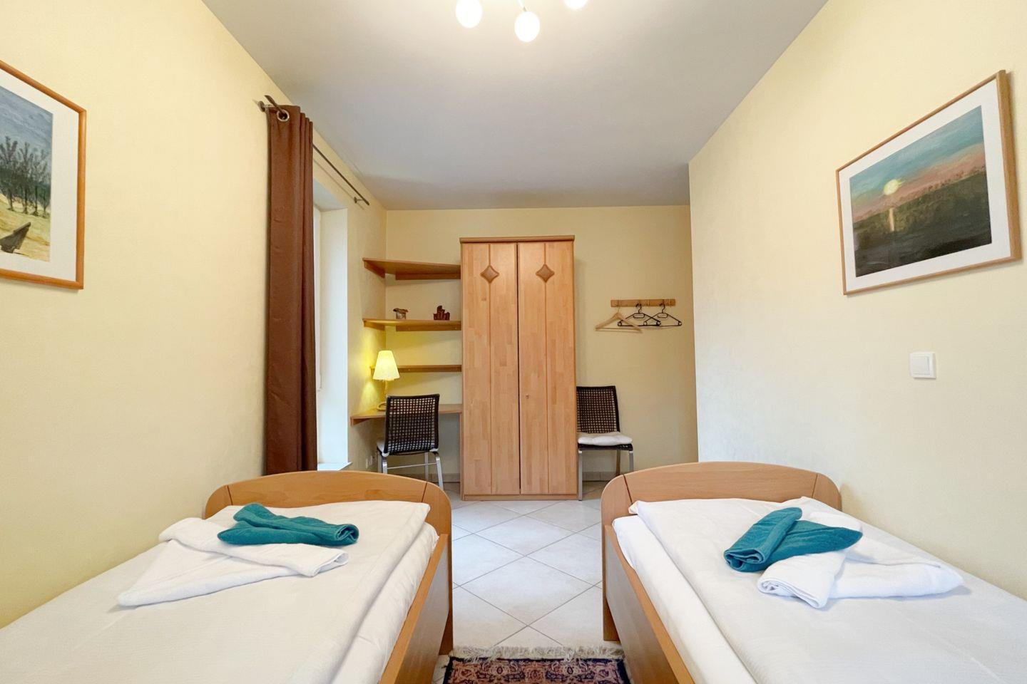 Darüber hinaus stehen Ihnen zwei komfortable Schlafzimmer zur Verfügung, die mit hochwertigen Betten und flauschiger Bettwäsche ausgestattet sind. Hier finden Sie den idealen Rückzugsort für erholsame Nächte. Das Badezimmer verfügt über eine bodengleiche Dusche und ist sorgfältig gestaltet, um allen Komfort zu bieten.