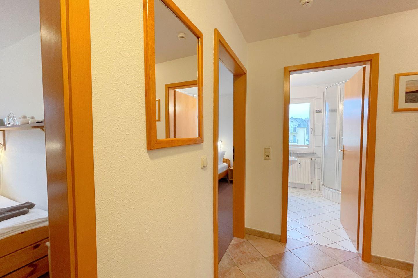 Ein besonderes Highlight der Unterkunft ist der Balkon, auf dem Sie morgens mit einem Kaffee in der Hand die frische Ostseeluft genießen oder abends den Sonnenuntergang bewundern können. Die Ferienwohnung befindet sich im ersten Stock eines gepflegten Gebäudes mit vier Etagen und bietet sowohl Garten- als auch Landschaftsblick. Hier können Sie einen ruhigen Rückzugsort finden und sich von der Hektik des Alltags erholen.